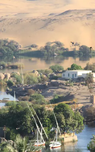 Assuan liegt im äussersten Süden Ägyptens, 800 Kilometer von Kairo entfernt. Der archaische Ort verzaubert dich und entführt dich ins Reich von 1001 Nacht. Malerisch segeln die typischen Feluken auf dem Nil, der die Stadt auf der Ostküste von den sanften Wüstenhügeln der Westseite trennt.