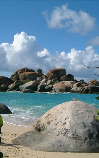 Am Strand «The Baths» auf Virgin Gorda befindest Du dich in einer Bilderbuch-Kulisse. Der Strand fein wie Puderzucker, hohe Palmen und das Meer klar wie ein Aquarium. Eine zusätzliche Besonderheit hat dieser Strand – riesige Felsbrocken im Sand bilden Grotten, Pools und Höhlen, die spazierend, kletternd oder schwimmend erkundet werden wollen.