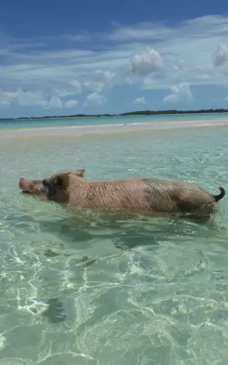 Besuche die glücklichsten Schweine der Welt. Sie sind auf der kleinen Insel Big Major Cay an einem Strand zu Hause. Hier leben sie ein sauglückliches Leben, faulenzen im warmen Sand, schwimmen mit Besuchern um die Wette und lassen sich gerne streicheln und füttern.