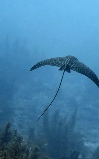 Um die Inseln herum verlaufen steile, tiefe Unterwasser-Klippen, die du bei den Tauchgängen erkunden kannst. Die Steilwände fallen zum Teil hunderte Meter in die Tiefe. Die Nordwand von Grand Cayman fällt mehr als 1800 Meter hinab, du siehst hier bei einem Wandtauchgang gefleckte Adlerrochen, Meeresschildkröten und natürlich viele mehr!