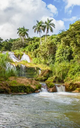 Nutze die Gelegenheit, bei einem Besuch von Cienfuegos einen Abstecher zum Wasserfall El Nicho zu machen. Die ziemlich holprige Anfahrt wird mit herrlichen Aus- und Anblicken belohnt. Der Fluss Río Hanabanilla stürzt hier 15 Meter über Terrassen in die Tiefe. Unterhalb lässt es sich wunderbar in einem der kleinen, smaragdgrünen Naturpools planschen. Als Supplement hast du auf diesem Ausflug atemberaubende Ausblicke auf die Berge.