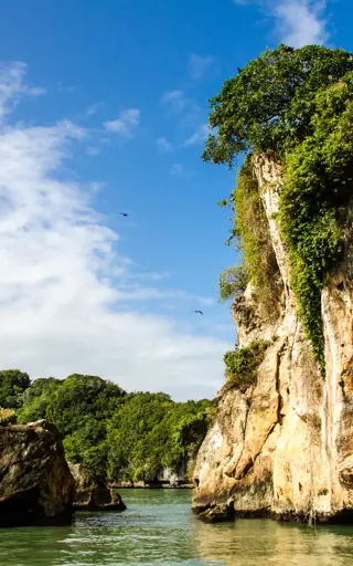 Wandere auf dem Enigma de la Roca im arten- und waldreichen Mikrokosmos dieser Karstlandschaft mit Höhlen und Naturpools. Auf dem wilden Pfad entdeckst du eine Vielzahl an Pflanzen- und Tierarten, zum Beispiel Krokodile, Schildkröten, Echsen und zahlreiche Vogelarten. Tauche anschliessend im sehr klaren, natürlichen Süsswasser-Pool ab für einen echten Frische-Kick.