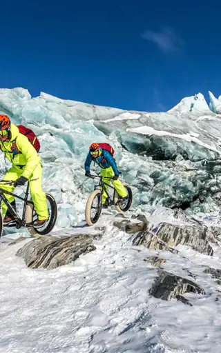Mit Fatbikes aus der Schweizer Bikeschmiede «Transalpes» fährst du den Arctic Circle in Grönland. Umgeben vom ewigen Eis des Russel Glaciers durchquerst du einen Teil Grönlands.