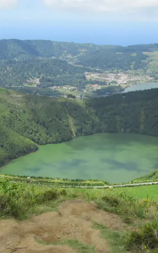 Die kesselförmige Struktur vulkanischen Urpsrungs gehört zu den schönsten und beliebtesten Ausflugszielen auf den Azoren. Highlight ist der Vulkansee, der durch seine wunderbaren Farben besticht. Vom Rande des Vulkankraters schimmert das Wasser des grösseren Lagoa Azul in tiefem Blau, während das Wasser des kleineren Lagoa Verde durch Lichtreflexionen des umliegenden Nadelwaldes grünlich glitzert.