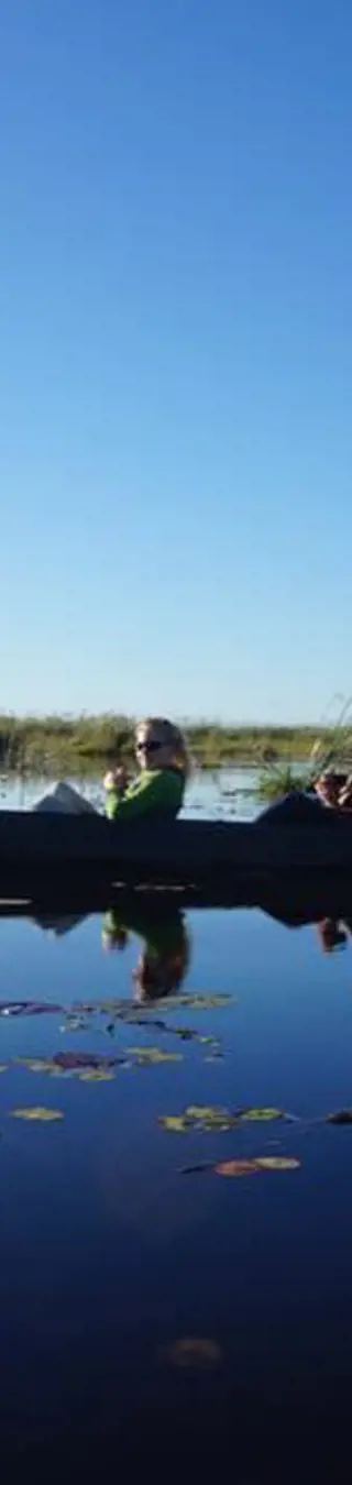 Eine unvergessliche Erfahrung beim Besuch des Okavango-Deltas ist eine Fahrt mit einem Mokoro. Diese Einbaumboote gleiten gemächlich durch die schilfbestandenen Kanäle und werden von einem einheimischen Fahrer sicher gesteuert, der sie mit einem langen Holzstab vorantreibt. So kannst du die Flora und Fauna kennenlernen und dem leisen Plätschern des Wassers lauschen.