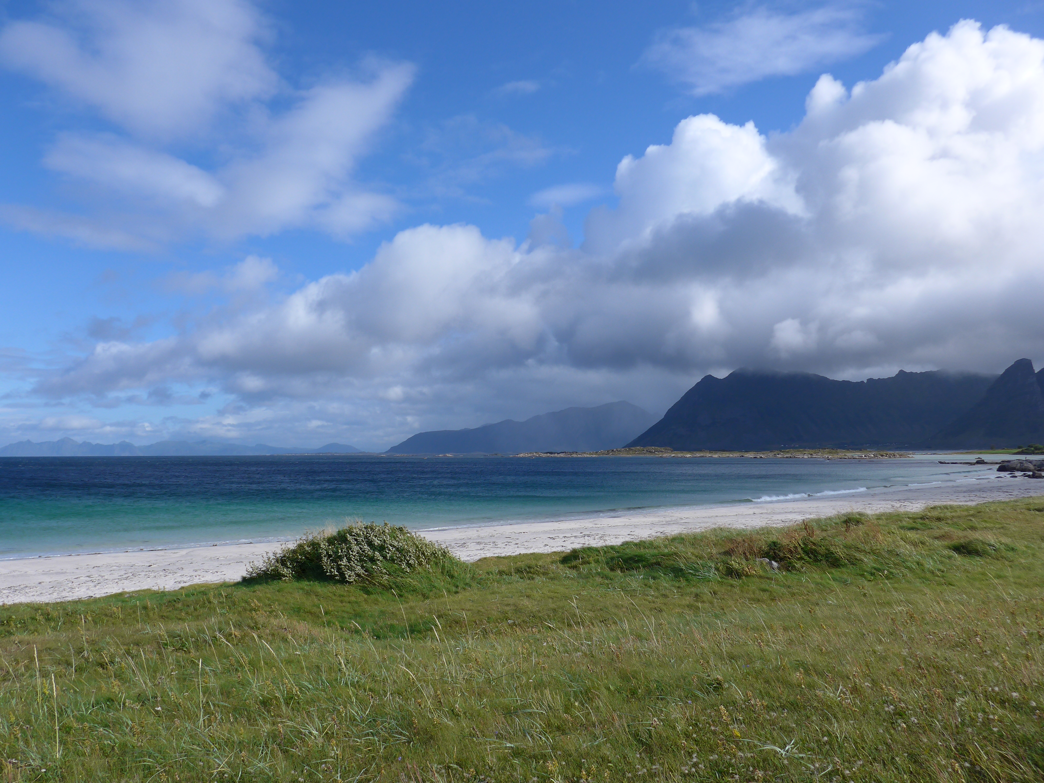 Immer wieder entdecken wir schöne Buchten und spazieren Stränden entlang. Doch bei der Wassertemperatur in Verbindung mit dem Wind wird uns dann jeweils schnell bewusst, dass wir uns oberhalb des Polarkreises befinden.