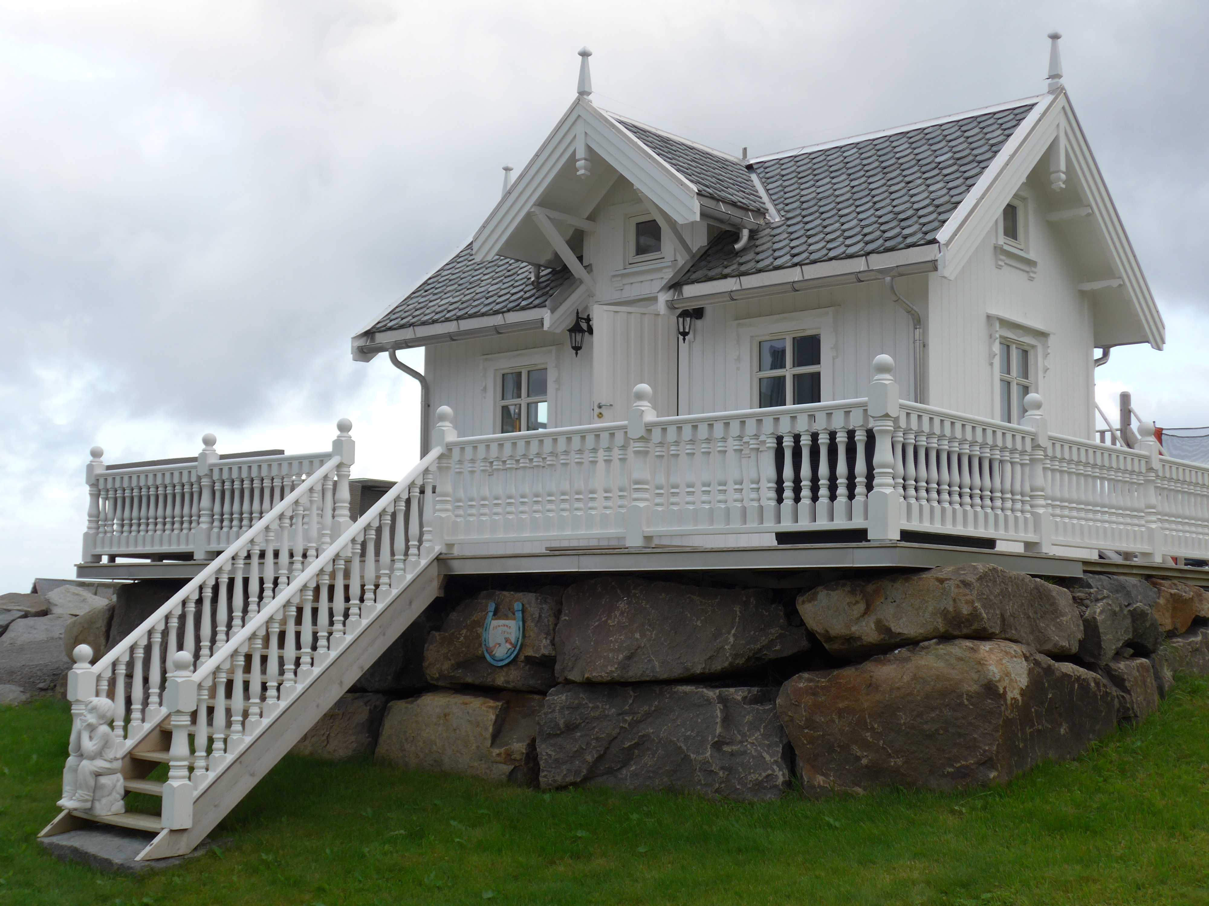 Neben den typisch roten Rorbuer findet man auch sonst sehr schöne Unterkünfte. Für etwas Spezielles, wie dieses kleine Häuschen im Süden der Inseln, lohnt sich frühes Buchen. Da wir nach Mitte August unterwegs sind, haben wir bereits vielfältigere Möglichkeiten. Wer flexibel sein möchte, packt am besten noch die Campingausrüstung ein.