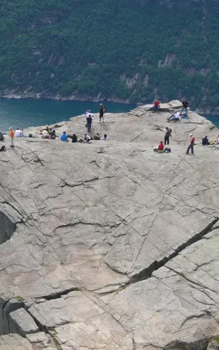 Von da kommen also all die spektakulären Fotos! Aber der 600m hohe Felsvorsprung, der quadratisch überhängt, hat es in sich. Denn nur wer die Wanderung hinauf schafft, der darf sich mit einer der mächtigsten Aussichten Europas belohnen.