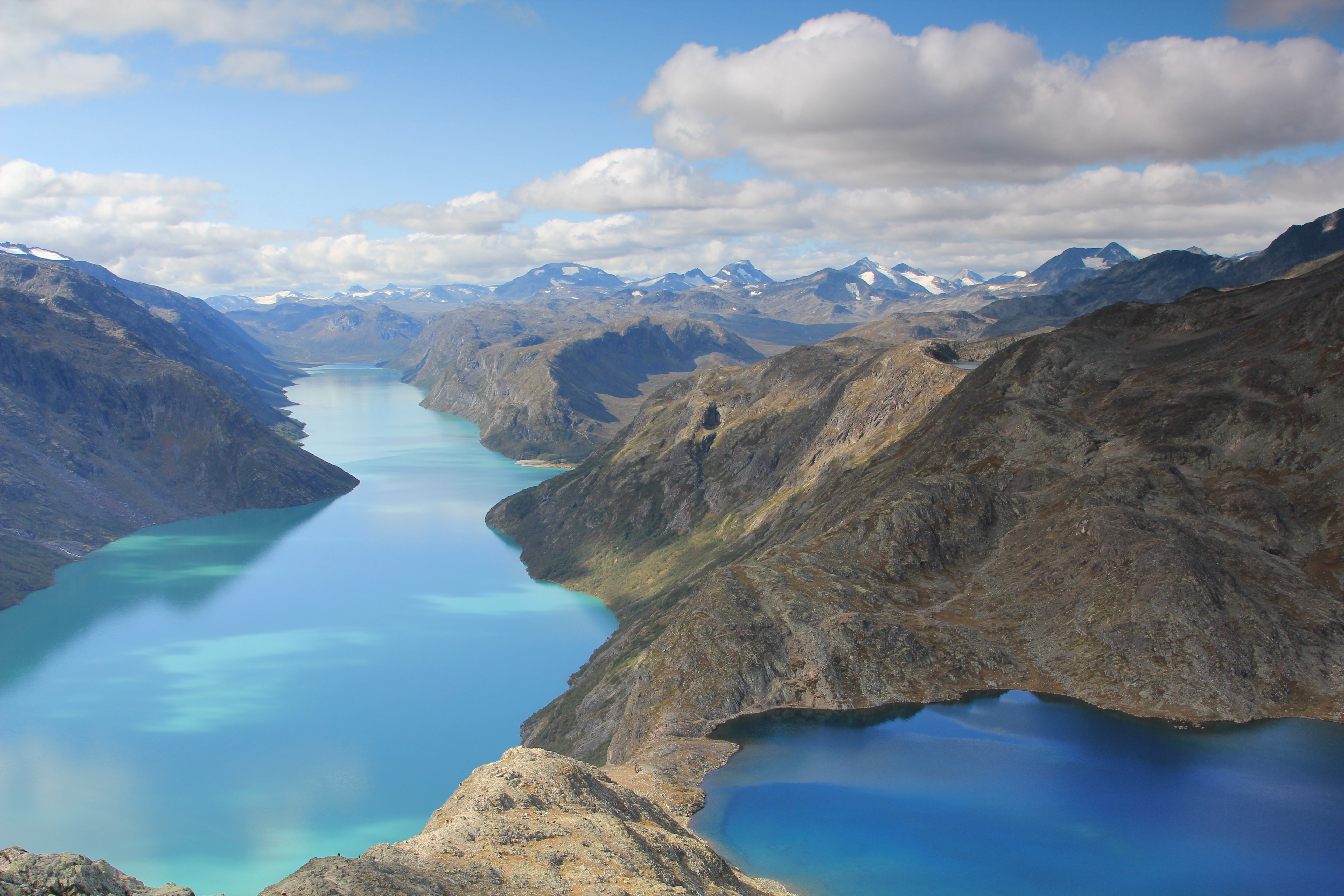 Nach einer Übernachtung am Gjendesee starten wir auf eine der bekanntesten Wanderungen Norwegens. Der Aufstieg zum Besseggengrat bringt uns ziemlich ins Schwitzen, oben auf dem Grat weht dann ein eisiger Wind. Doch das Panorama zu den Schneebergen und Gletschern sowie auf die türkisblauen Seen lässt uns schnell alles vergessen. Hier könnte ich noch eine Weile weiterwandern.