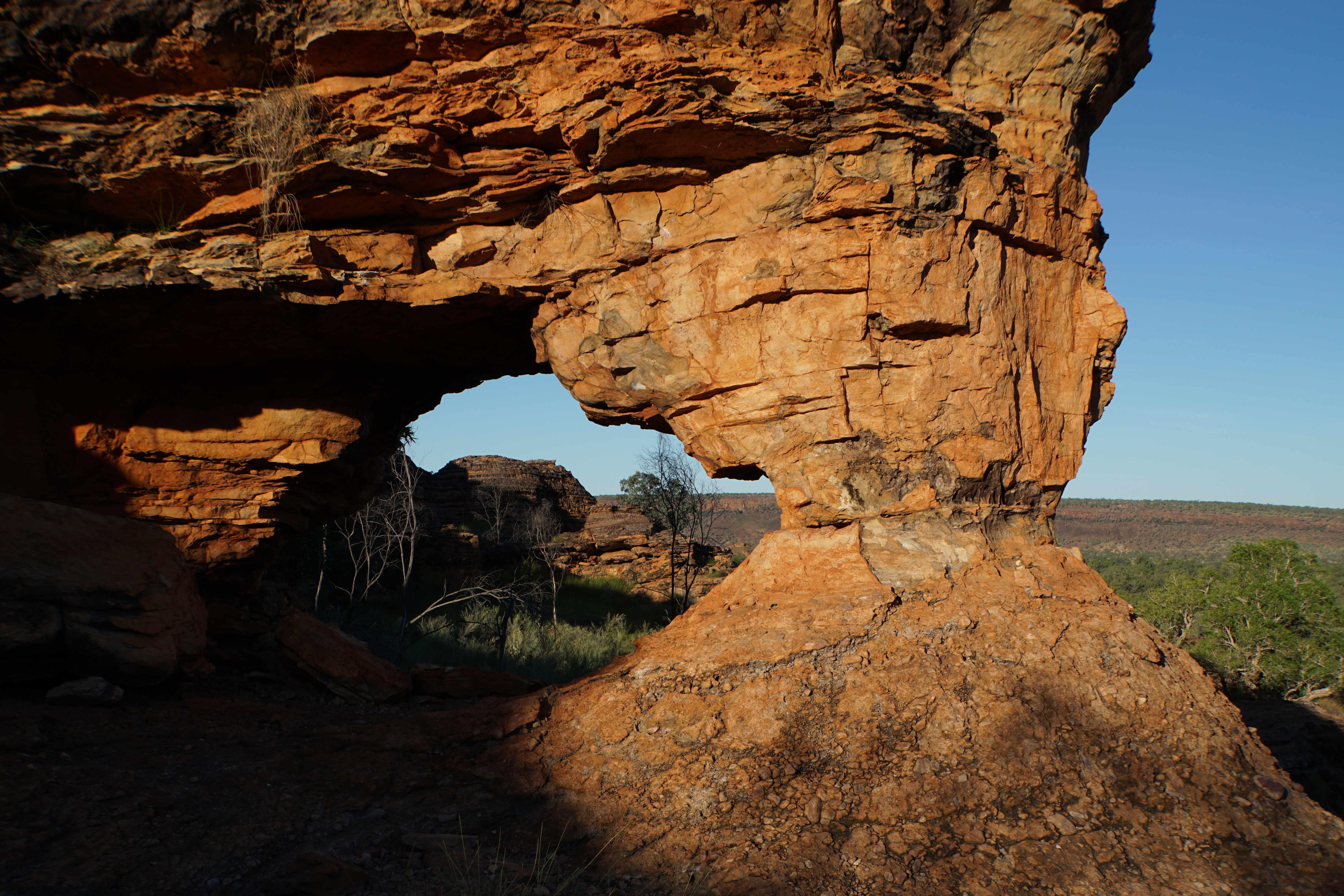 Das kleine Naturschutzgebiet ist bekannt für seine Sandsteinformationen und Aboriginal-Felsmalerien. Verschiedene Wanderpfade führen unmittelbar vom Campingplatz durch die eindrucksvolle Szenerie und bringen uns hautnah zu den in Millionen von Jahren durch Wind und Wetter geschaffenen Felsgebilde.