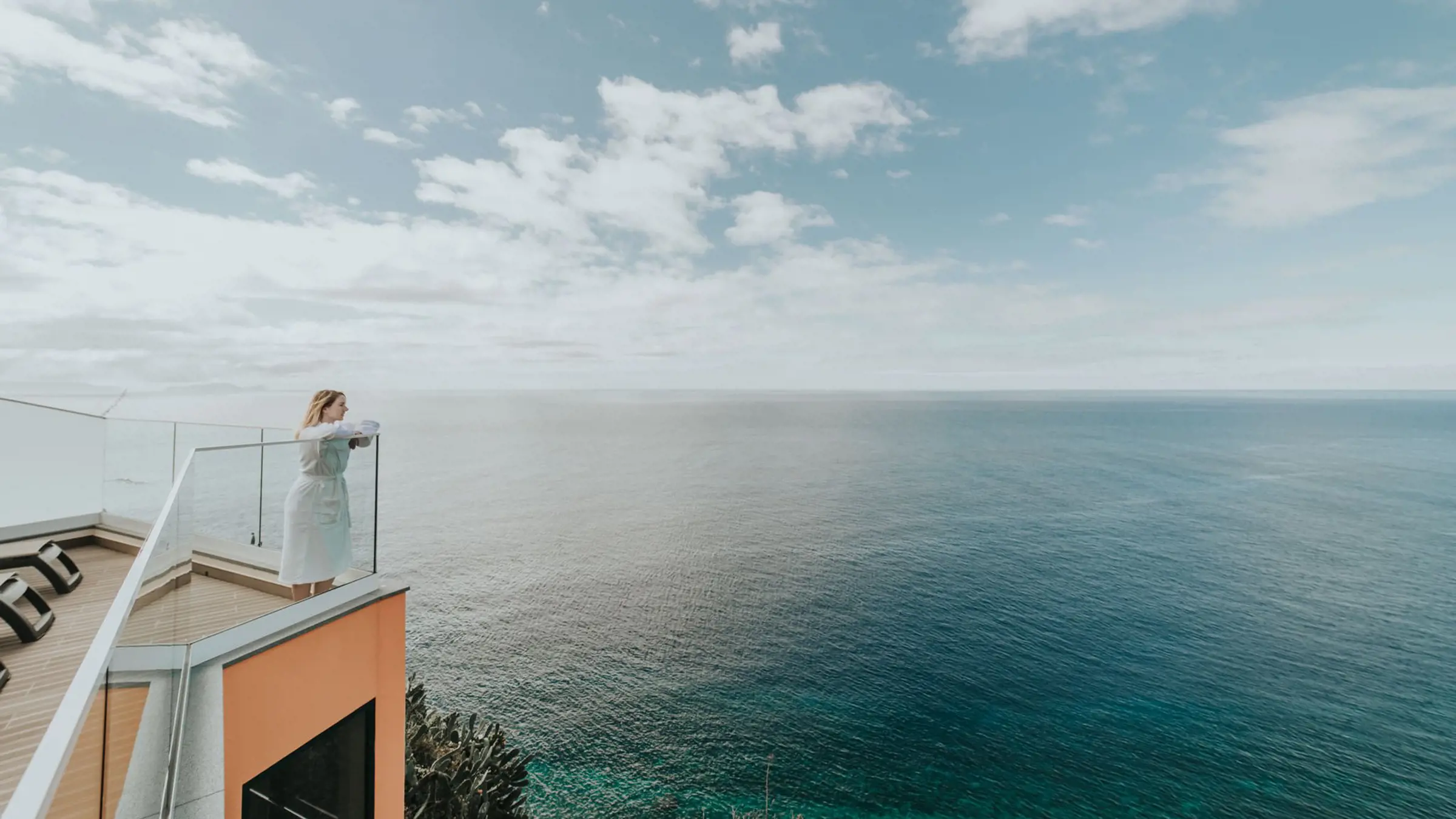 Die Landschaft von Madeira ist geprägt von hohen Bergen und steilen Küsten vulkanischen Ursprungs. Das Hotel Alpino Atlantico befindet sich auf einer Klippe über dem Atlantik, ist im Stil eines Terrassenhauses gebaut und verfügt über 27 Zimmer auf drei Stockwerken. Offene Treppen verbinden die einzelnen Ebenen mit dem Garten. Von der Terrasse des Restaurants aus hast du einen herrlichen Blick über das Meer. Hier kannst du dich gemütlich zurücklehnen und die köstlichen ayurvedischen Mahlzeiten geniessen und je nach Saison die grossen Kreuzfahrt-Schiffe beobachten, die gemächlich vorbeiziehen. Vielleicht hast du sogar Glück und entdeckst Delphine, die in den Wellen spielen.