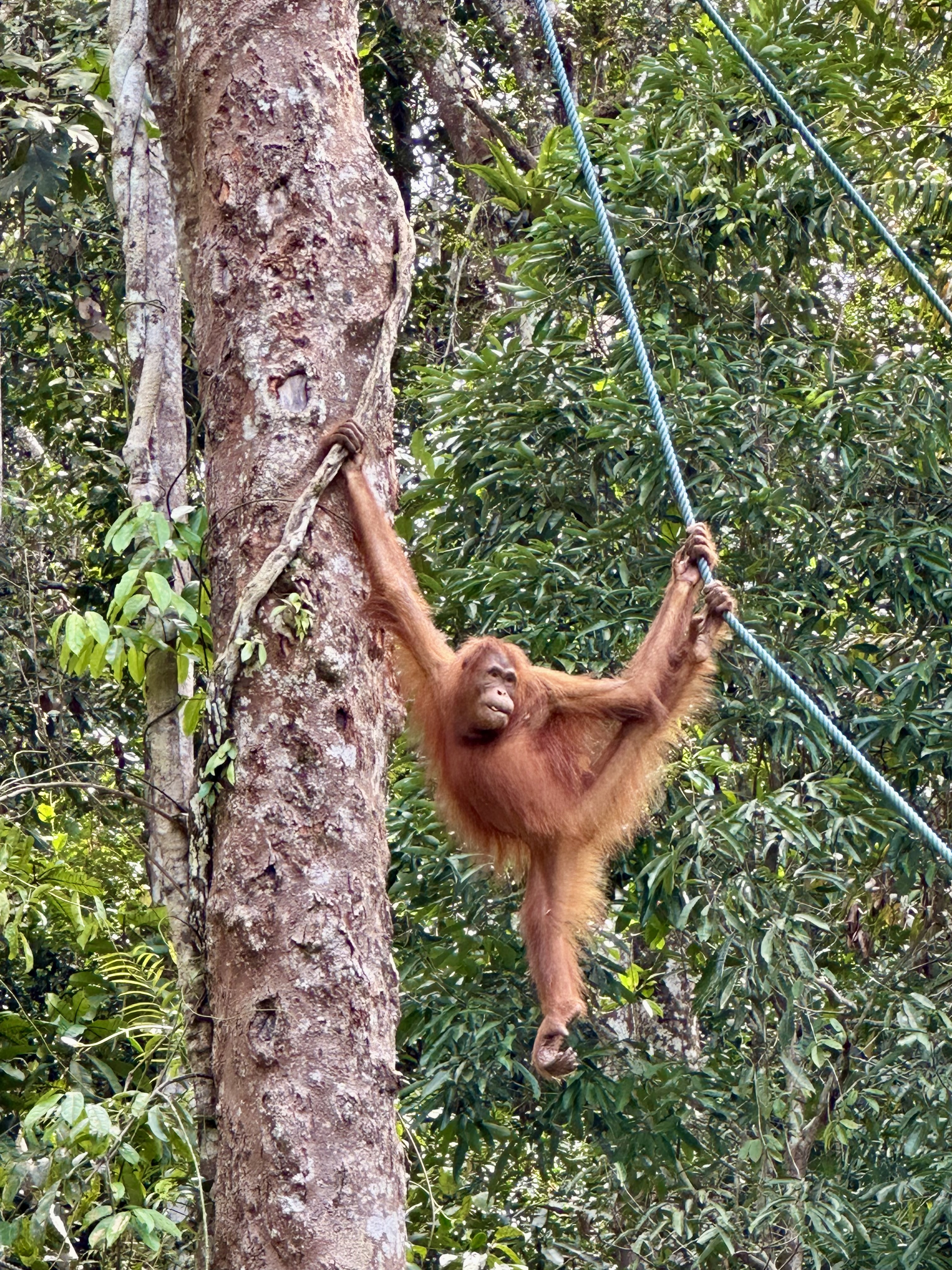 Im Semenggoh Wildlife Centre wurden im Laufe von über 20 Jahren eine Reihe von Orang-Utans rehabilitiert und in die freie Wildbahn entlassen. Sie werden hier durch zwei Fütterungen pro Tag (am Morgen und Nachmittag) unterstützt. Die Fütterungen können von den Besucherinnen und Besuchern des Wildlife Centers mit etwas Abstand beobachtet werden. Für mich persönlich waren es etwas zu viele Besucher auf einmal, entsprechend hoch war der Lärmpegel.