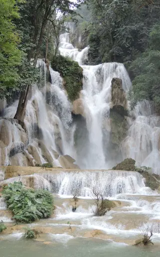 Die Kuang Si Wasserfälle sind die größten Wasserfälle in Laos und nur eine gute halbe Autostunde von Luang Prabang entfernt. Die türkisblauen Pools zwischen den einzelnen Kaskaden inmitten der üppig grünen Vegetation laden vor allem an heißen Tagen zu einem erfrischenden Bad ein.