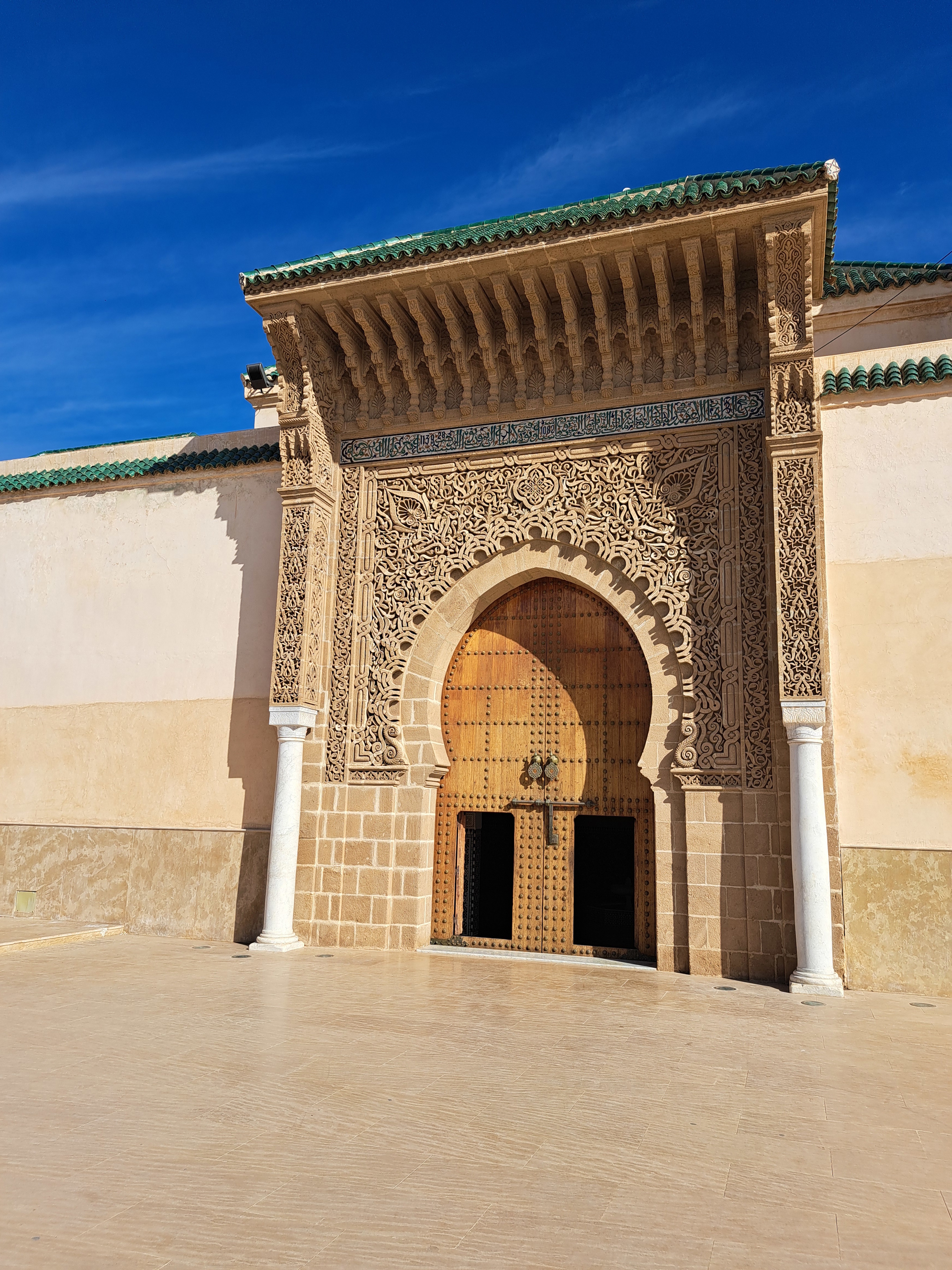 Goldene Ornamente, feinste Zellij-Fliesen und kunstvoll geschnitzte Holzdecken: Das Mausoleum von Moulay Ismail ist ein Fest für die Sinne. Hier zeigt sich die Detailverliebtheit marokkanischer Handwerkskunst – erhaben, prachtvoll, einzigartig.