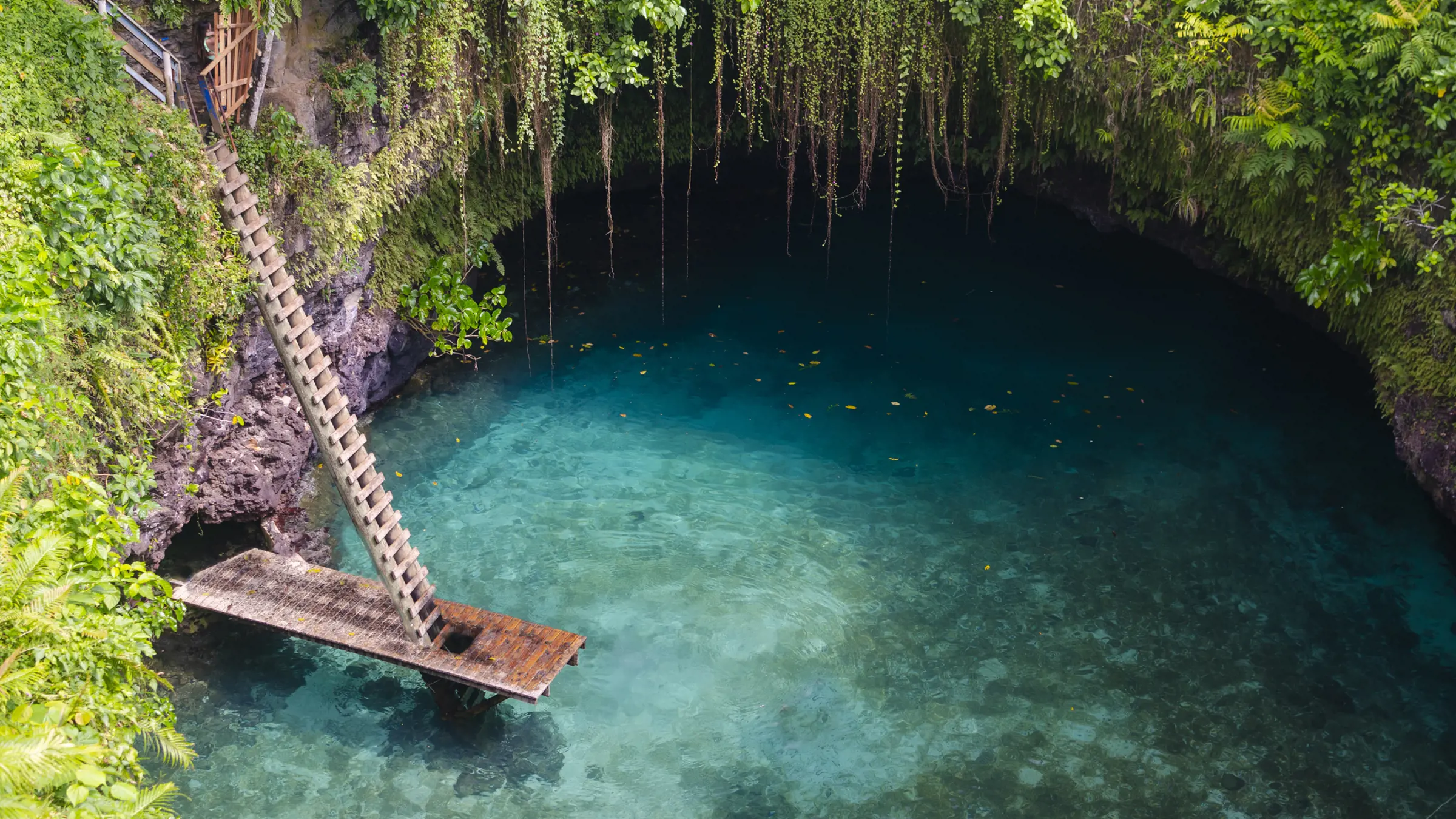 Fahre quer über die Hauptinsel nach Apia. Du überquerst den höchsten Pass von Samoa – für Schweizer Verhältnisse eher eine Bergstrasse, aber mit atemberaubender Aussicht. Auf dem Weg dorthin kannst du einen Wasserfall bestaunen. Ein Stopp beim Theologischen Zentrum von Samoa lohnt sich: Inmitten des Campus liegt die Piula Cave, wo du schnorcheln und die bunte Fischvielfalt Samoas entdecken kannst.