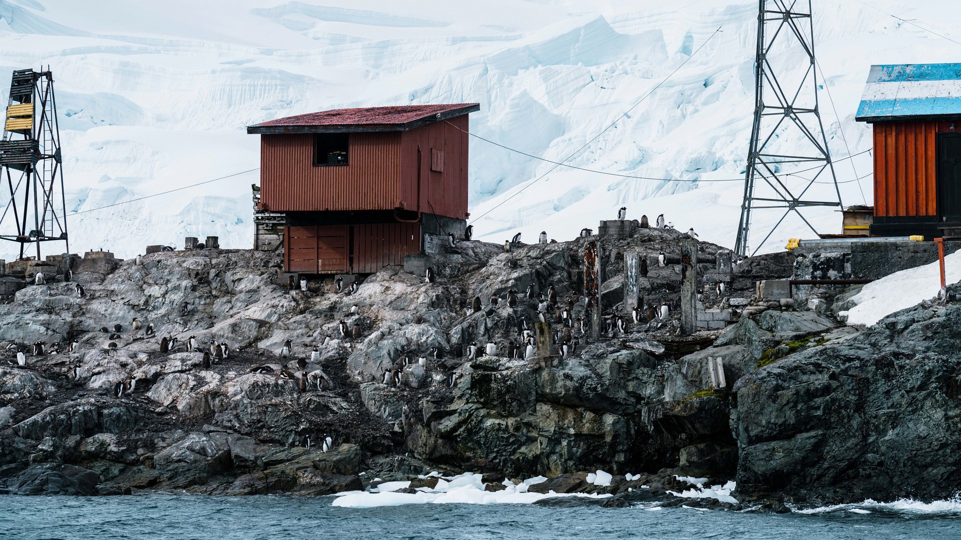 Die Zodiac-Fahrt geht vorbei an der Almirante Brown Antarctic Station. Auch dort ist eine Eselspinguin-Kolonie beheimatet – und es riecht grauenhaft. Normalerweise könnte man die Station besuchen, aber da wir eines der letzten Schiffe sind, bevor der Winter kommt, ist diese Station schon unbemannt. In der Brown Station werden Ozeanografie, Biologie und Ozonüberwachung betrieben und sonstige wissenschaftliche Arbeiten.