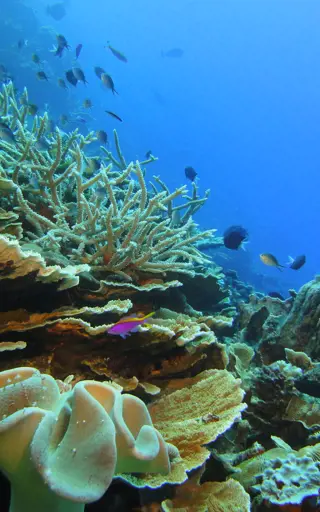 Das Resort befindet sich auf einer einsamen Insel, weit weg von der Zivilisation. Es sind 165km bis zum nächsten Hafen, und 20km mit dem Boot bis zum nächsten Dorf. Und vor der Haustür befindet sich einige der artenreichsten Riffe der Welt.