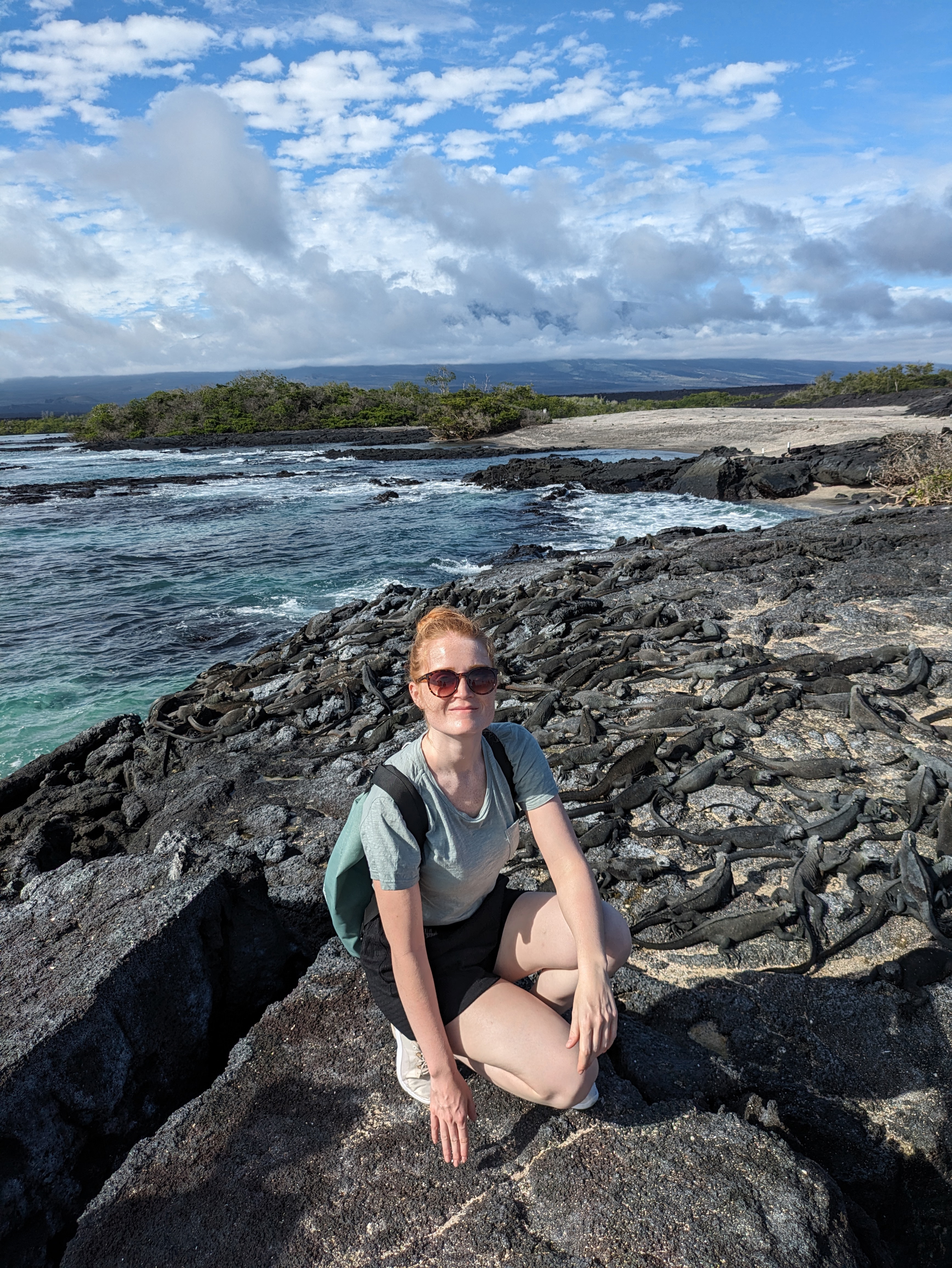 Tag 4 startet bei Punta Espinosa. Hoppla, da wäre ich doch fast auf eine Meerechse getreten. Aber halt – da sonnen sich ja Tausende und Abertausende auf den Steinen!