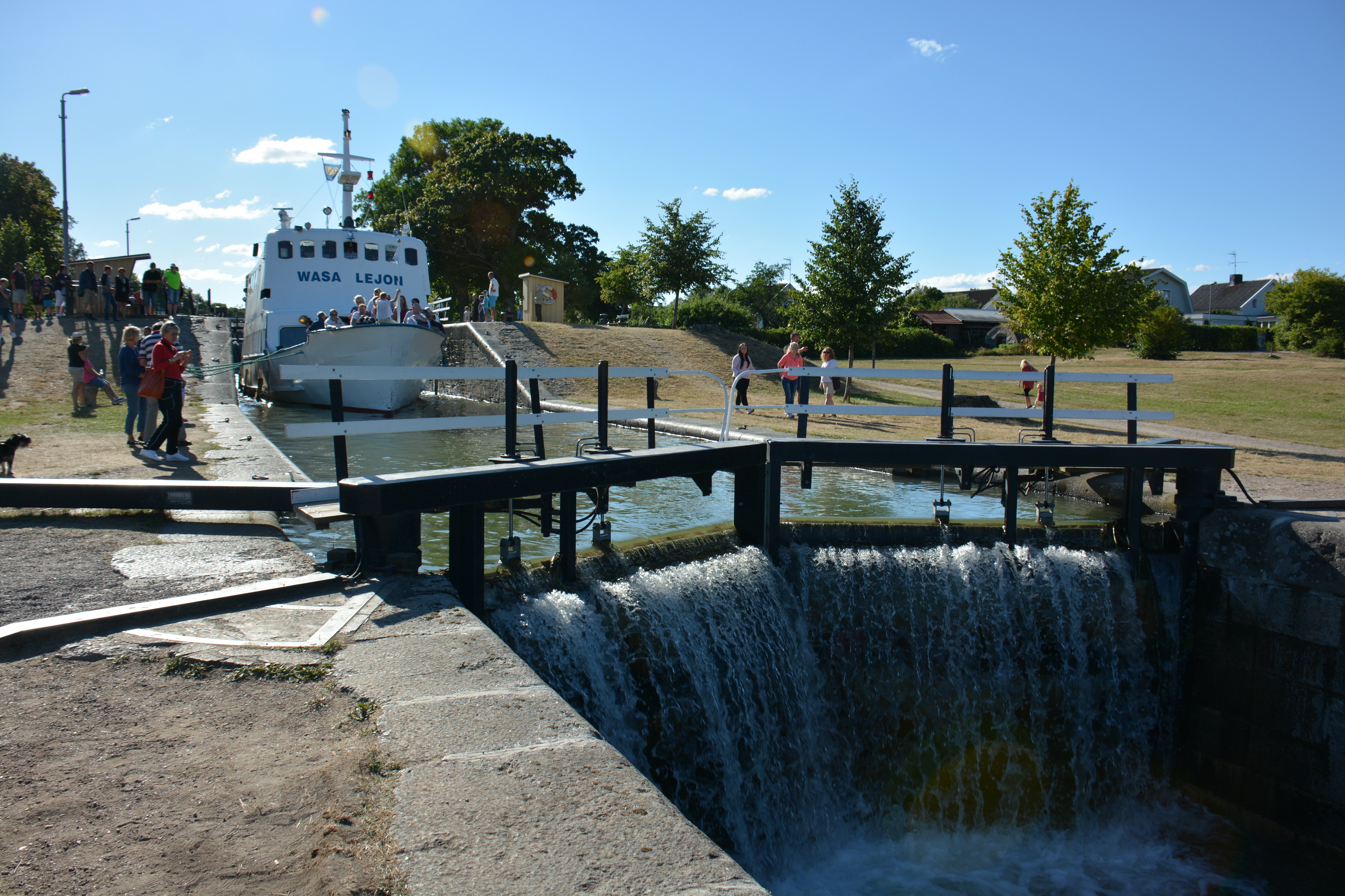 Der Göta Kanal ist Schwedens grösstes Bauwerk. 190 km Wasserweg verbindet die Ostsee mit dem Vänernsee. Bei Berg beobachten wir gespannt, wie die Schiffe über die Schleusentreppe in den Roxensee gelangen.