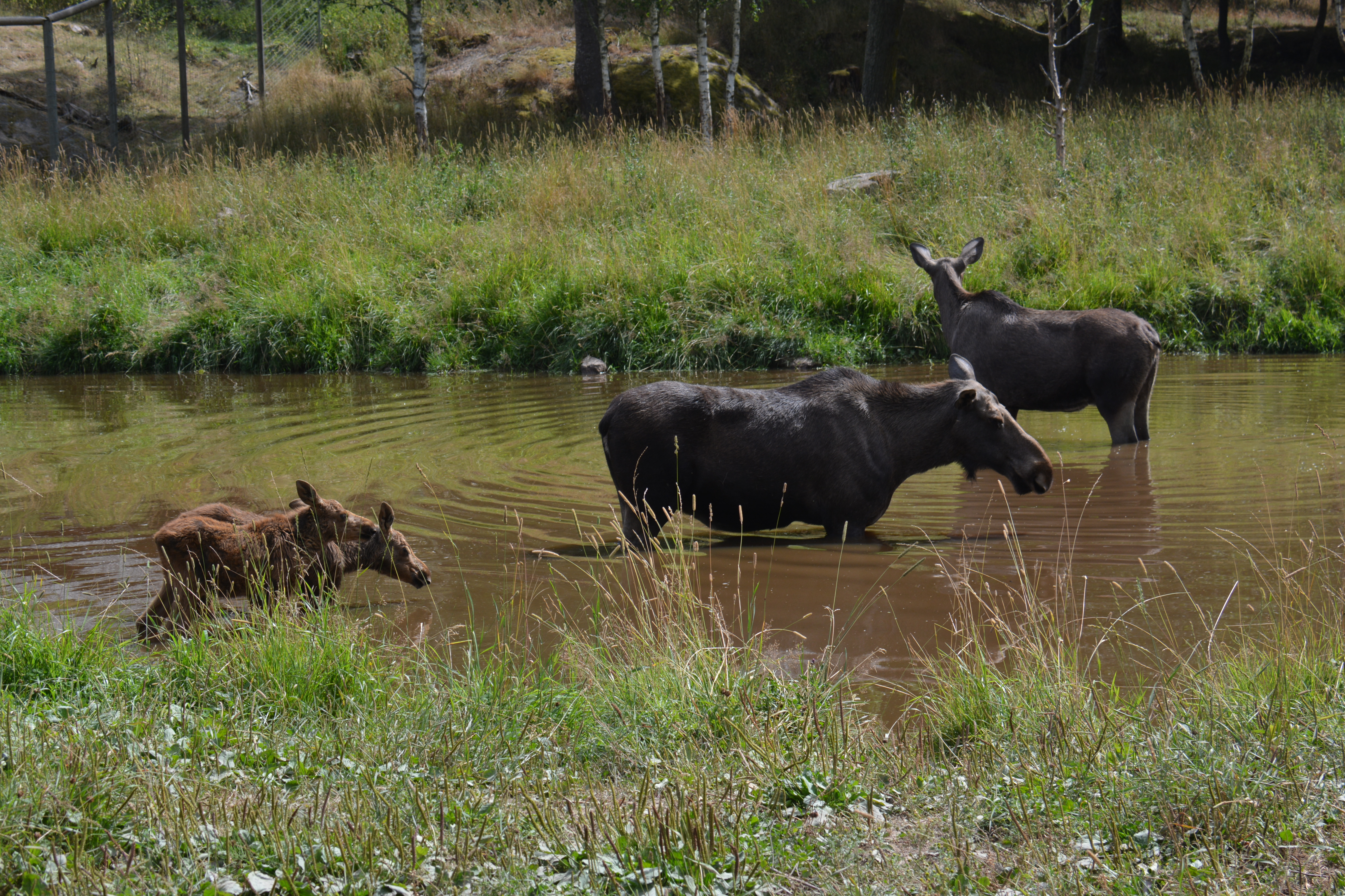 Den Königen der nordischen Wälder kann man bei Dämmerung in freier Wildbahn begegnen. Da wir zu dieser Uhrzeit schon, resp. noch, schlafen, besuchen wir die Tiere in einem der zahlreichen Elchparks. Unsere Kinder dürfen die Elche mit Birkenblätter füttern, das macht Spass und wäre in der Wildnis unmöglich.