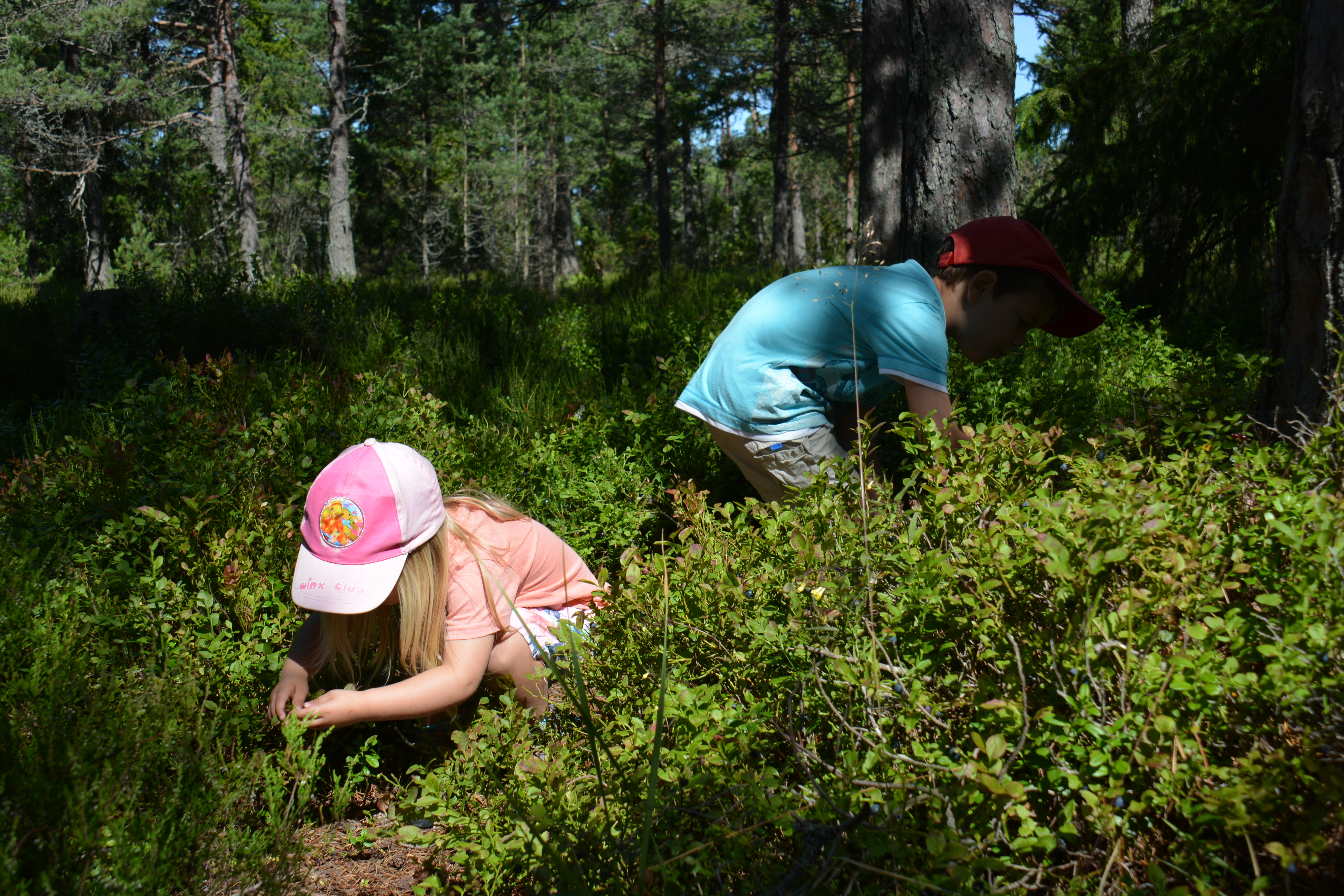 Finnlands Wälder sind im Sommer ein Schlemmerparadies: Heidelbeerbüsche so weit das Auge reicht. Wir finden auch Himbeeren und Pilze. Die Brombeeren sind aber noch nicht reif. So macht sogar den Kindern das Wandern Spass.