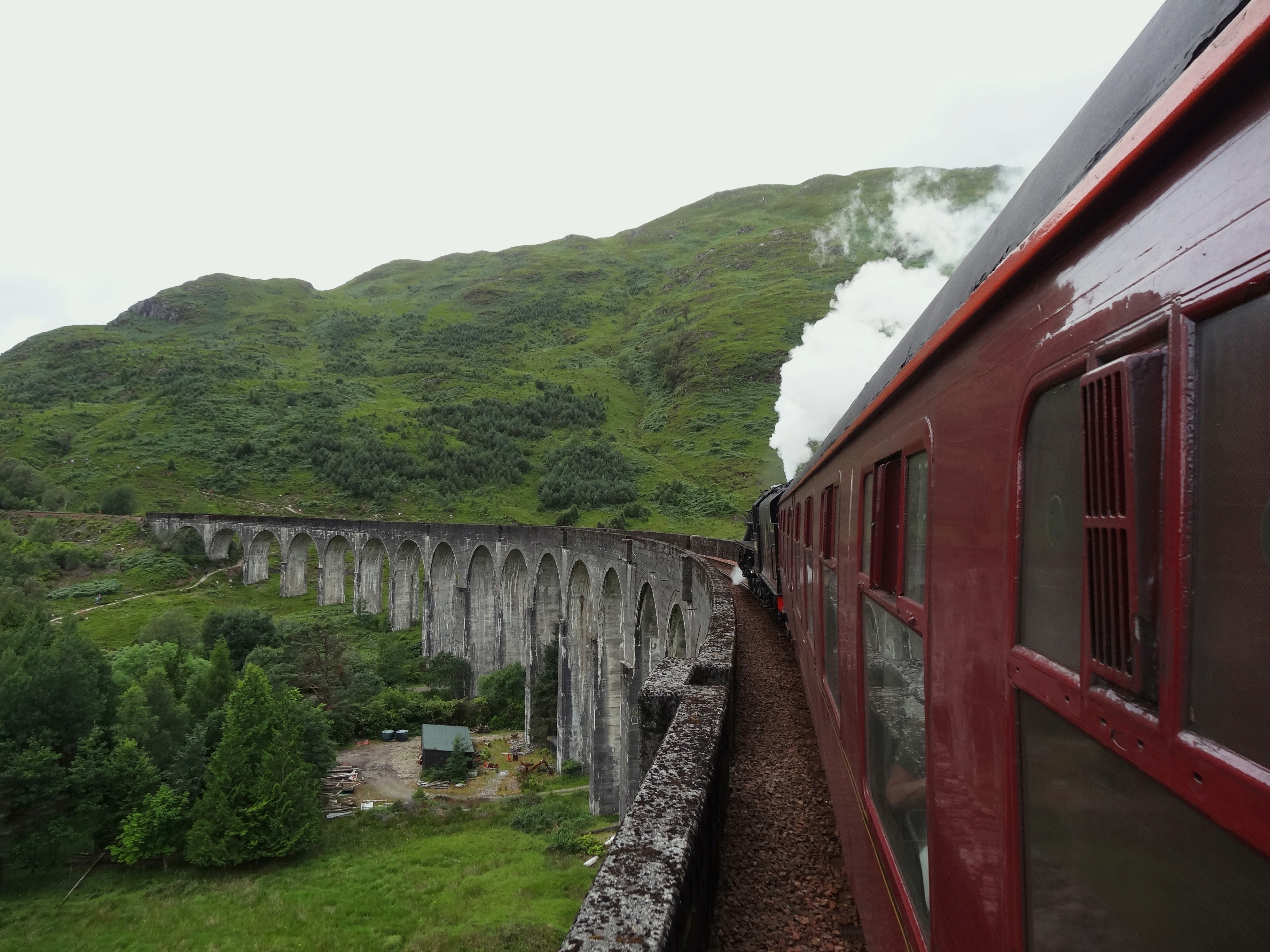 Ein schöner Ausflug steht heute auf dem Programm. Die Fahrt von Fort William nach Mallaig mit dem "Jacobite Steam Train", besser bekannt als der "Hogwart Express" aus dem Harry Potter Buch. Die schöne Fahrt auf der Strecke der West Highland Line gilt als eine der attraktivsten Panoramastrecken Europas. Ein Muss für jeden Zugliebhaber oder Harry Potter Fan.