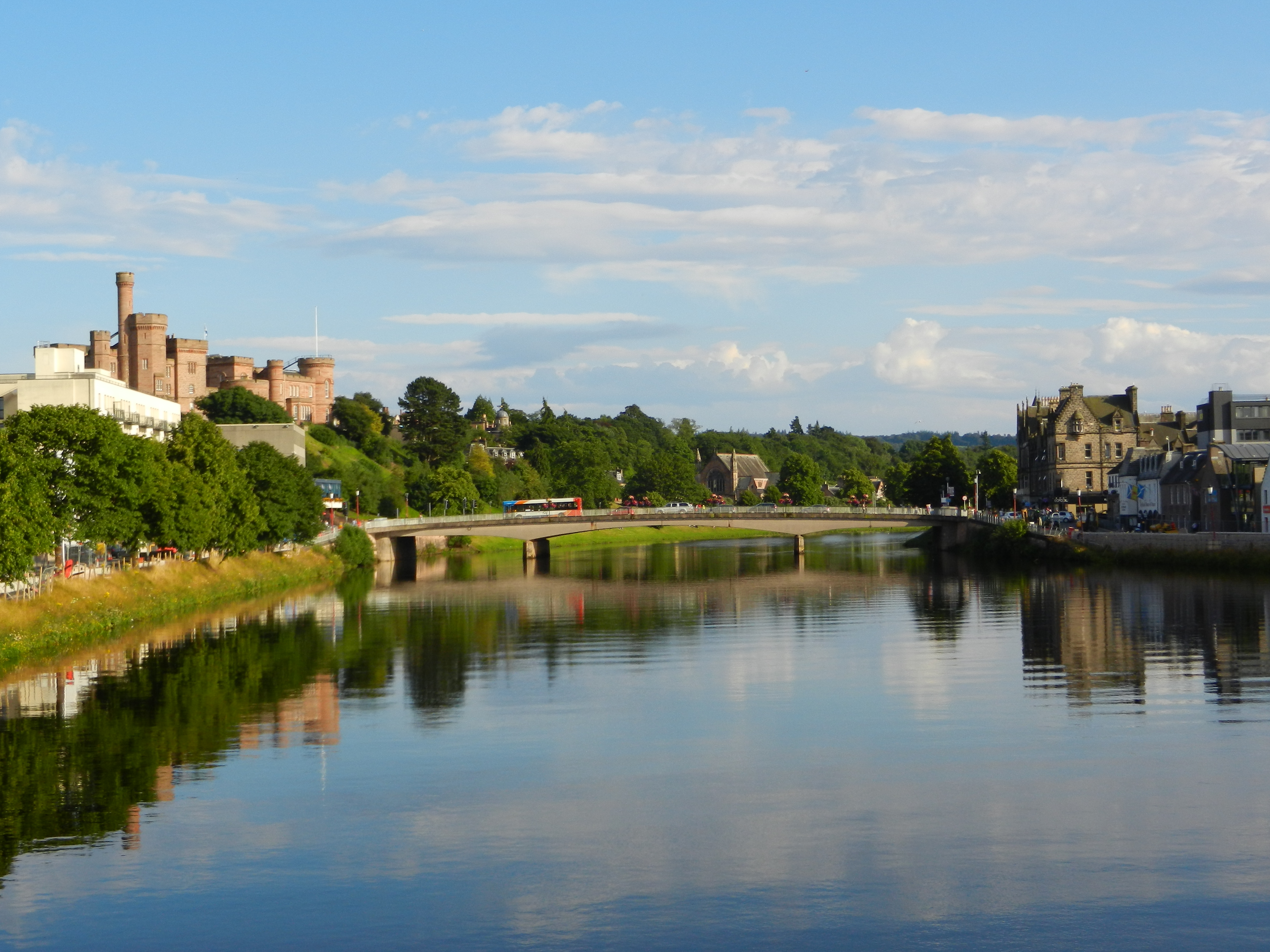Die Stadt Inverness liegt am Ende des Loch Ness. Der Ort und seine Umgebung sind geschichtsträchtig. Für Interessierte befindet sich wenige Kilometer östlich der Stadt das Schlachtfeld von Culloden, wo 1746 die letzte Schlacht der Jakobiten gegen die britischen Regierungstruppen mit einer verheerenden Niederlage der Jakobiten endete. Sehr viel zu sehen gibt es in Inverness nicht, ein Stopp ist trotzdem lohnenswert. Die Stadt hat eine kleine, schöne Innenstadt, gute Restaurants und eine sehr hübsch angelegte Promenade entlang des Flusses Ness.