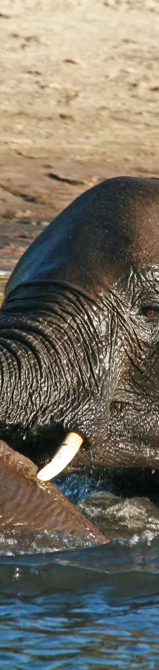 Im Chobe Nationalpark leben mehr als 60'000 graue Riesen, es ist das grösste Elefanten-Refugium der Welt! Der generell tierreiche Nationalpark im Nordosten des Landes ist dank ganzjährig nutzbarem Pistennetz ideal für Selbstfahrer mit 4x4-Fahrzeug – und nur 70 Kilometer von den Victoriafällen entfernt.