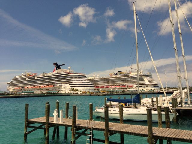 Die mächtigen Kreuzfahrtschiffe liegen Reihe an Reihe im Hafen von Nassau. Meist kommen diese von Miami und nehmen Kurs auf weitere Destintionen in der Karibik.