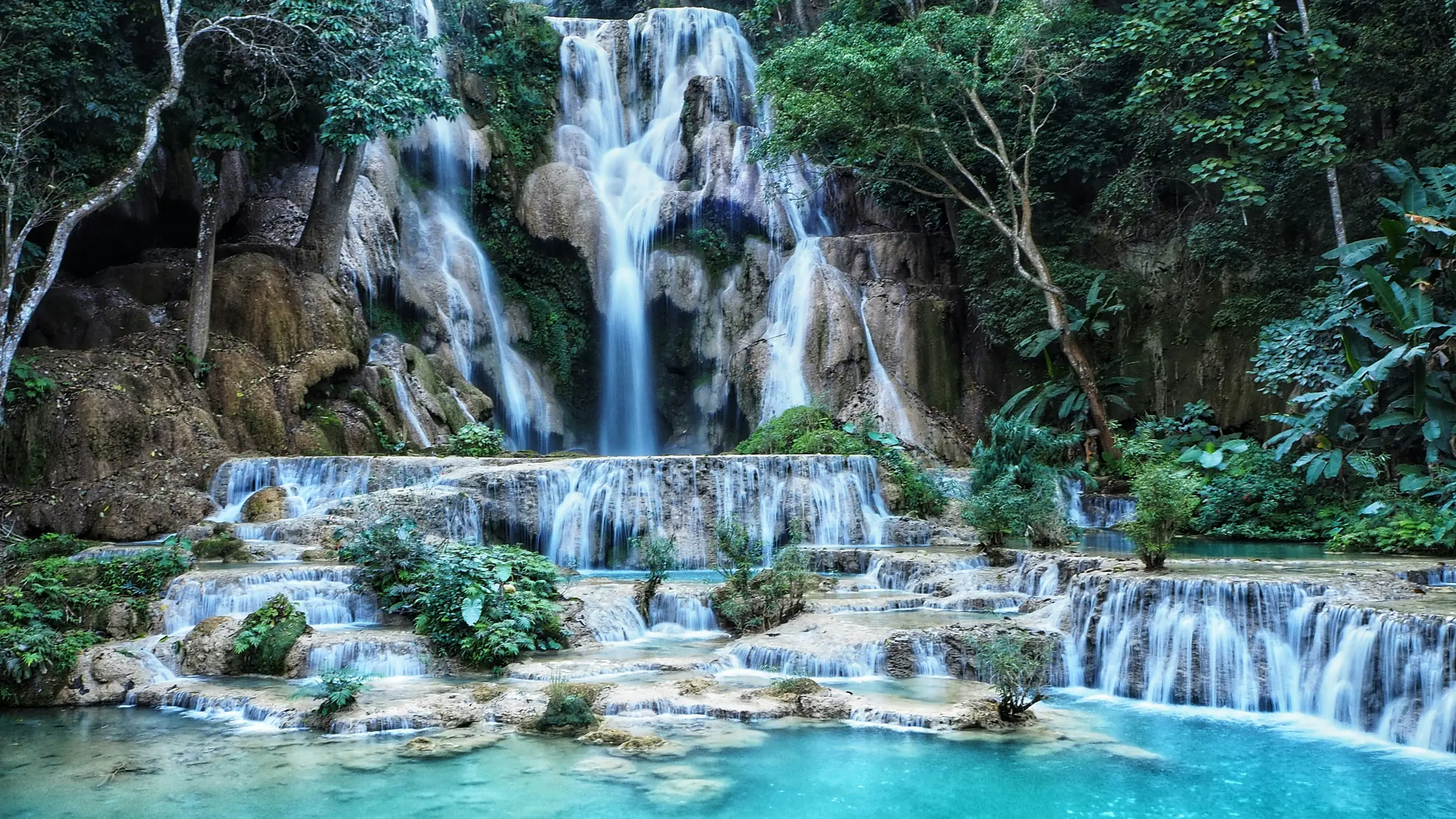 Mit dem Zug gelangst du nach Luang Prabang. Etwas ausserhalb der Stadt befindet sich der als schönster bekannte Wasserfall von Laos: Kuang Si. Ein gut beschatteter Weg führt entlang verschiedener türkisfarbener Kaskaden zum Hauptfall.