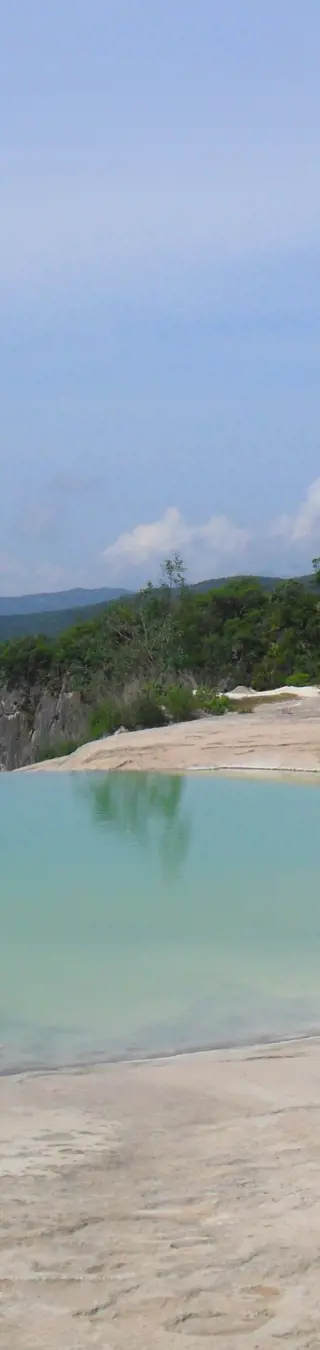 Der versteinerte Wasserfall ist ein absolutes Muss bei einem Aufenthalt in der Region Oaxaca. Der Ort thront zwischen mineralischen Felsen und natürlichen Becken über dem Tal. Baden ist möglich, aber das Wasser ist kalt – Erfrischung garantiert!
