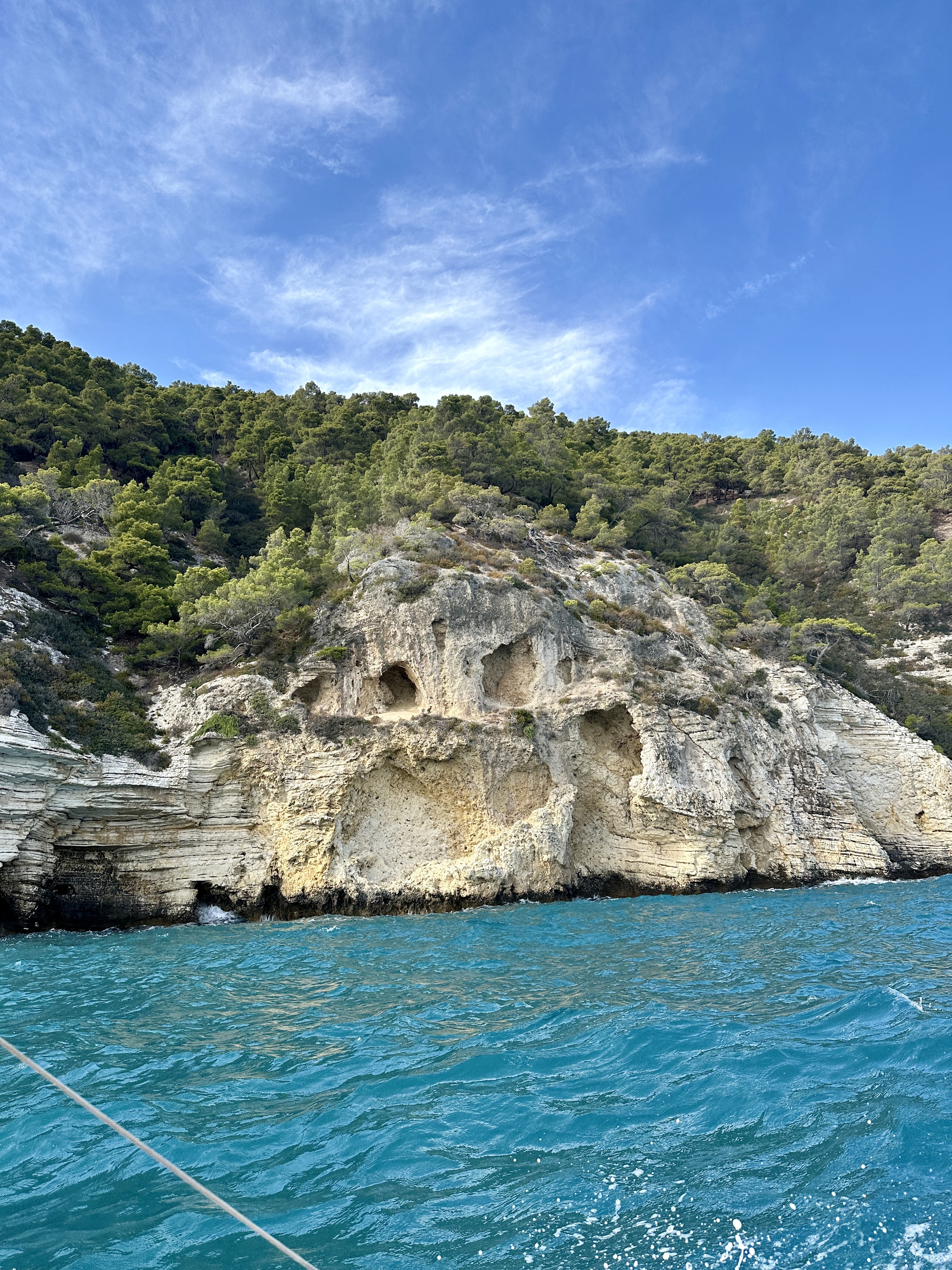 Wir lassen es uns nicht nehmen und buchen eine Bootstour, um die Küstenlandschaft vom Meer aus zu bestaunen. Diese ist problemlos vor Ort im Hotel oder ab Vieste buchbar. Ein Highlight der Tour: Wir können sogar in die Höhlen hineinfahren.