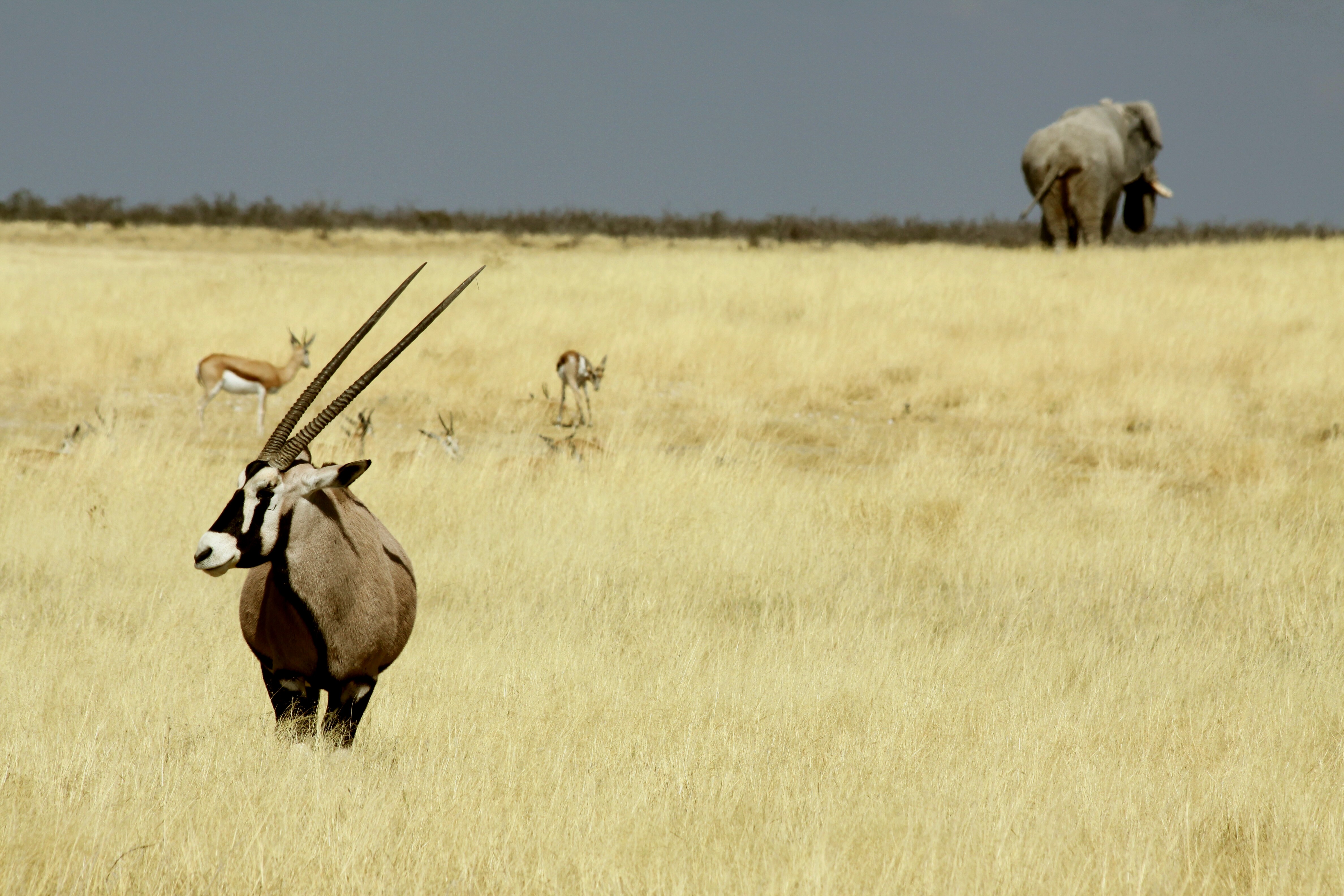 ...doch uns zieht es zum Etosha Nationalpark, eines der grossen Highlights dieses Landes. Wir kommen von Osten her und übernachten als erstes im Namutoni Camp. Trotz unserer Geduld sehen wir noch nicht so viele Tiere. Aber am nächsten Tag, bei der Weiterfahrt kommt uns doch schon allerhand vor die Linse. Springböcke, Kudus, Giraffen...