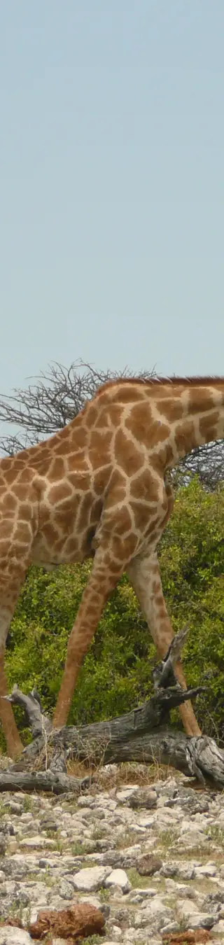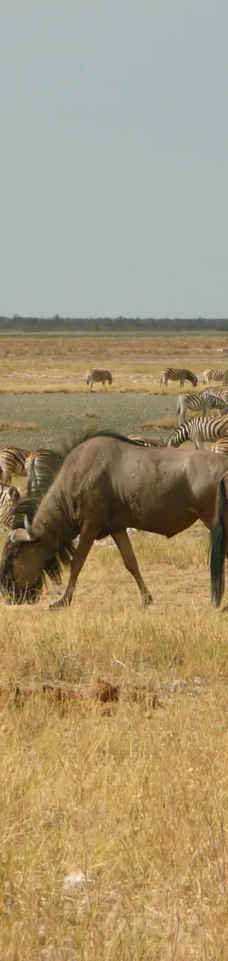 Etosha umfasst eine Fläche von über 22000 km2 und ist seit 1907 Wildschutzgebiet. Im Zentrum liegt eine ausgedehnte Salzpfanne. Vor rund 2 Mio. Jahren gab es hier einen riesigen See, der durch den Kunene Fluss gespeist wurde und später durch Änderung des Flussverlaufs allmählich austrocknete. Die Pfanne ist nahezu immer trocken. Besonders im südlichen Teil des Parks liegen jedoch verstreut zahlreiche Wasserlöcher, Lebensgrundlage für den Wildbestand. Fast die gesamte Palette an afrikanischem Grosswild ist im Park vertreten, inkl. Big Five.