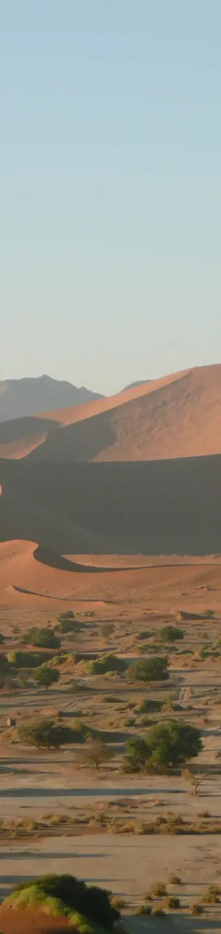 Die berühmte Salzpfanne liegt im Namib-Naukluft Nationalpark. Sie ist bekannt für ihre Sanddünen in der ältesten Wüste der Welt. Am Rand des Nationalparks befinden sich diverse Luxuslodges, die Sossusvlei Lodge ist direkt beim Eingangstor. Im Park selbst gibt es nur eine Unterkunft, die Sossus Dune Lodge. Vorteil: Man kann 30 Minuten vor Sonnenaufgang in den Park fahren - früher als alle anderen und hat die beste Zeit zum Fotografieren.