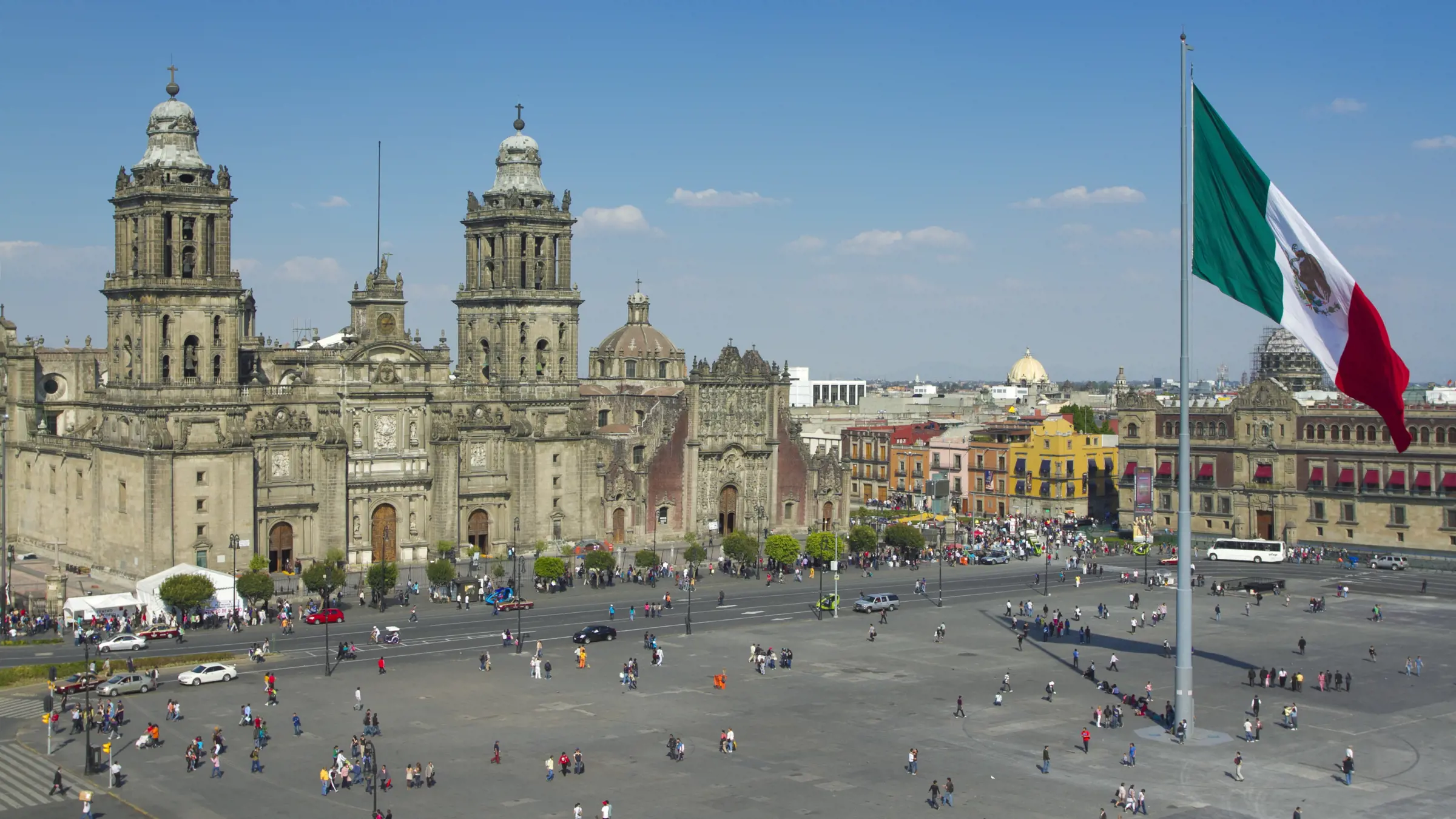 Wie gross schätzt du die Mexiko-Flagge, gehisst mitten auf dem Zócalo? Ganze 350 m2!-