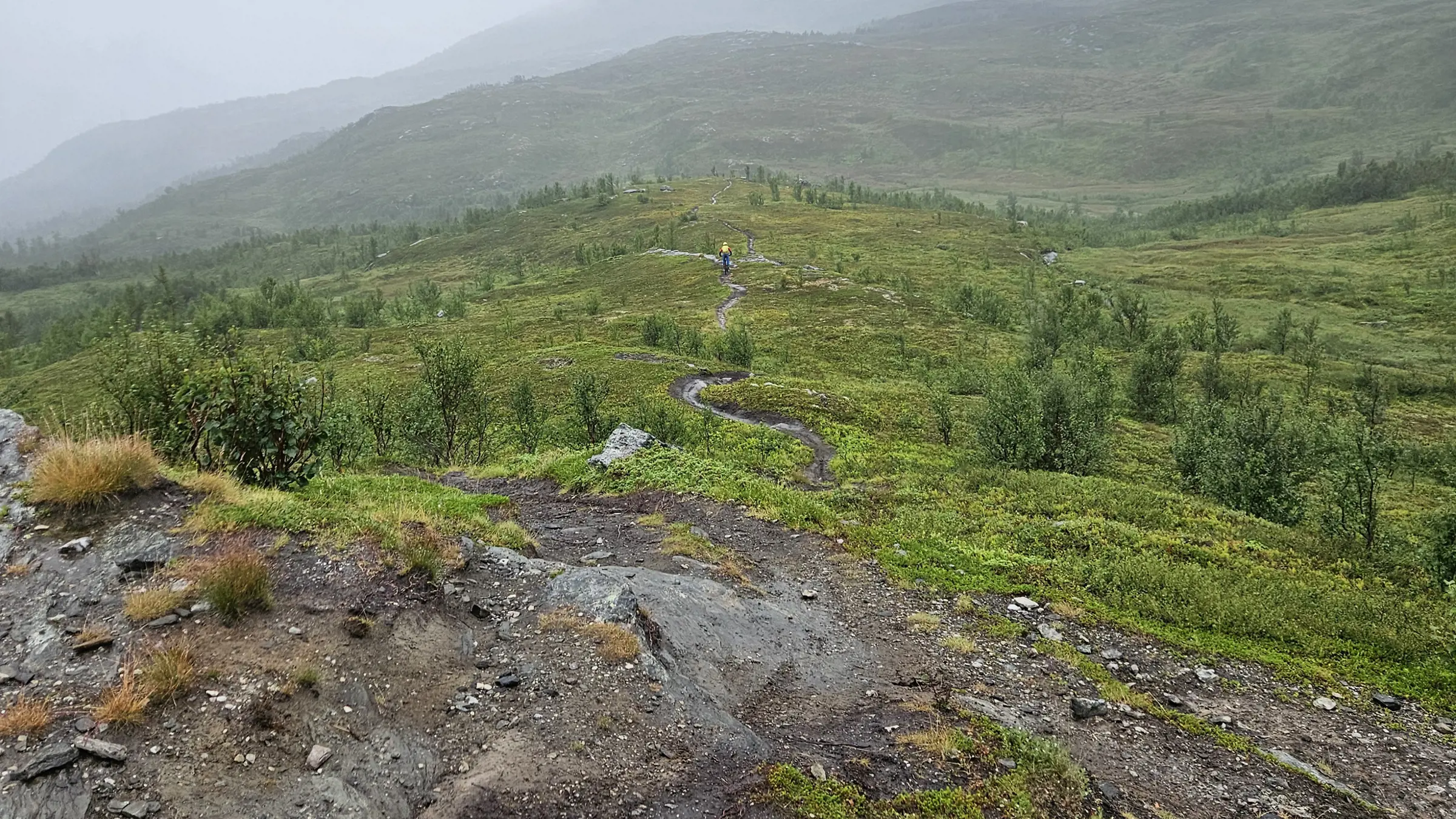 In Nordnorwegen bewegen wir uns immer in der Nähe der Fjorde, so dass es immer recht direkt bergauf geht. Um die Anstiege zu meistern, müssen wir unser Bike immer wieder schieben, vereinzelt sind kurze Tragepassagen möglich. Auf- und Abstieg erfolgen oft auf dem gleichen Trail.
