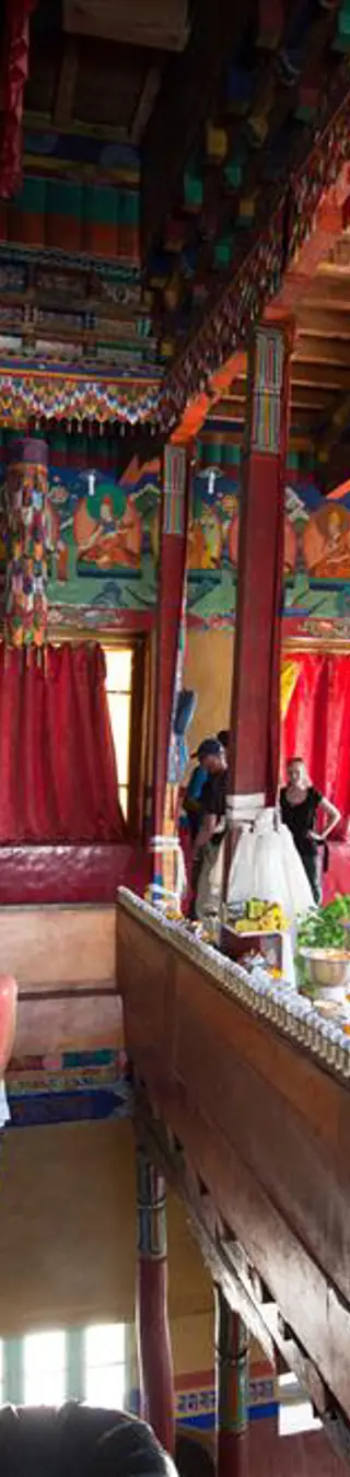 Das Kloster ist ein imposantes Bauwerk, das auf einem Hügel über das Spiti-Tal zu wachen scheint. Es ist ein tibetisch-buddhistisches Kloster und dient als Ausbildungsstätte der Lamas.