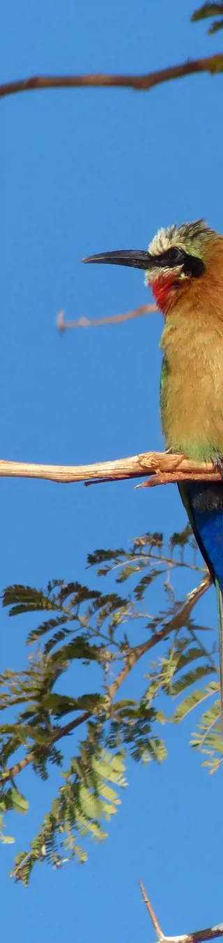 Wir verlassen Sambia und fahren in den Caprivi-Streifen. Die zweitägige Reise führt uns nach Westen durch dieses wildreiche Gebiet. Nahe Katima Mulilo erkunden wir mit dem Boot einen vom Sambesi überfluteten See, auf dem wir eine aussergewöhnliche Vogelwelt beobachten können. Ausserdem unternehmen wir eine Pirschfahrt im Mahango-Wildreservat in den Überschwemmungsebenen des Kavango-Flusses.