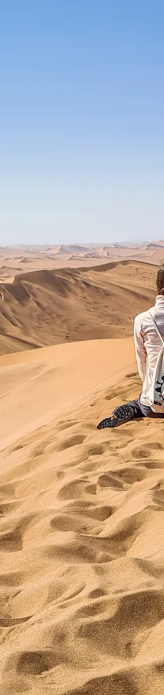 Mondartige Landschaften umgeben die Küstenstadt Swakopmund, die wir auf unserem Weg zur Namib Wüste mit ihren überragenden roten Sanddünen durchqueren. Wir wandern nach Sossusvlei, erkunden den Sesriem Canyon und geniessen einen einmaligen Sonnenuntergang von unserer Lodge.