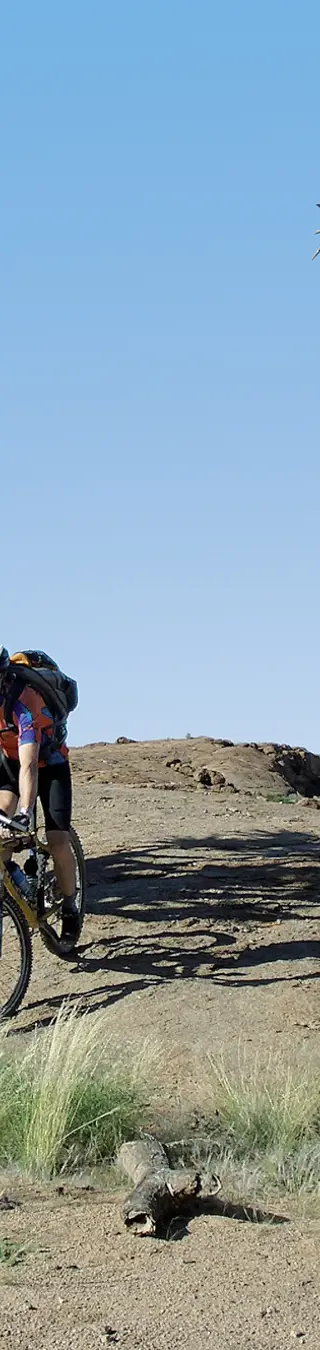 Namibgrens bietet eine 70 km lange Bikeroute mitten in der Natur, durch ein zerklüftetes und schönes Gebiet mit Granitfelsen. Es macht Spass, die unberührte Umgebung der Farm mit dem MTB auf Singletrails oder Jeep-Trails zu erkunden.