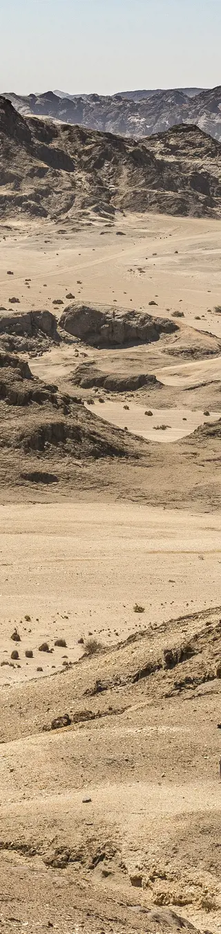 Auf dem Weg zur Küstenstadt Swakopmund durchqueren wir die zentrale Namib-Wüste und passieren den Wendekreis des Steinbocks, sowie den Gaub- und Kuiseb-Pass. Mit etwas Glück sehen wir unterwegs Springböcke, Zebras, Warzenschweine und Oryx-Antilopen. Je nach Zeitplan und Wünsche der Gruppe fahren wir auf unseren Mountainbikes in Richtung Tinkas Damm und Blutkoppe. Wer mag, erklettert den Gipfel der Blutkoppe. Von dort oben haben wir einen ungestörten Blick auf den Übergang vom Hochland in die sich dahinter erstreckende Wüste.