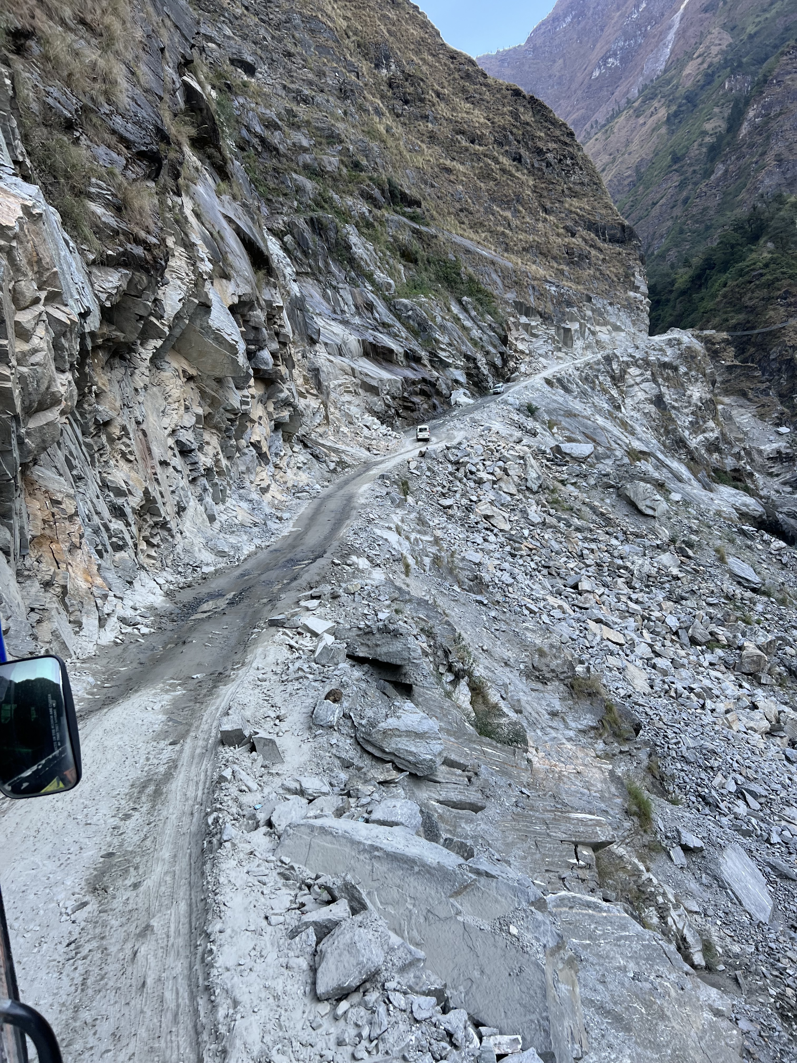Zwischen Tatopani und Marpha fahren wir mit dem lokalen Bus durch die Kali-Gandaki-Schlucht aufwärts. Über lange Zeit verlief hier eine wichtige Handelsroute zwischen Tibet und Indien, unter anderem für Salz und Reis. Die Strasse ist ziemlich abenteuerlich und nichts für schwache Nerven. Am besten schaut man nicht zu genau hin. Dank gewisser Schutzengel kommt es während unserer Fahrt nur zu einem «Fast-Zusammenstoss» mit einem Lastwagen auf der engen Schotterpiste. Zirka drei Stunden später erreichen wir unbeschadet und sichtlich erleichtert das Apfeldorf Marpha.