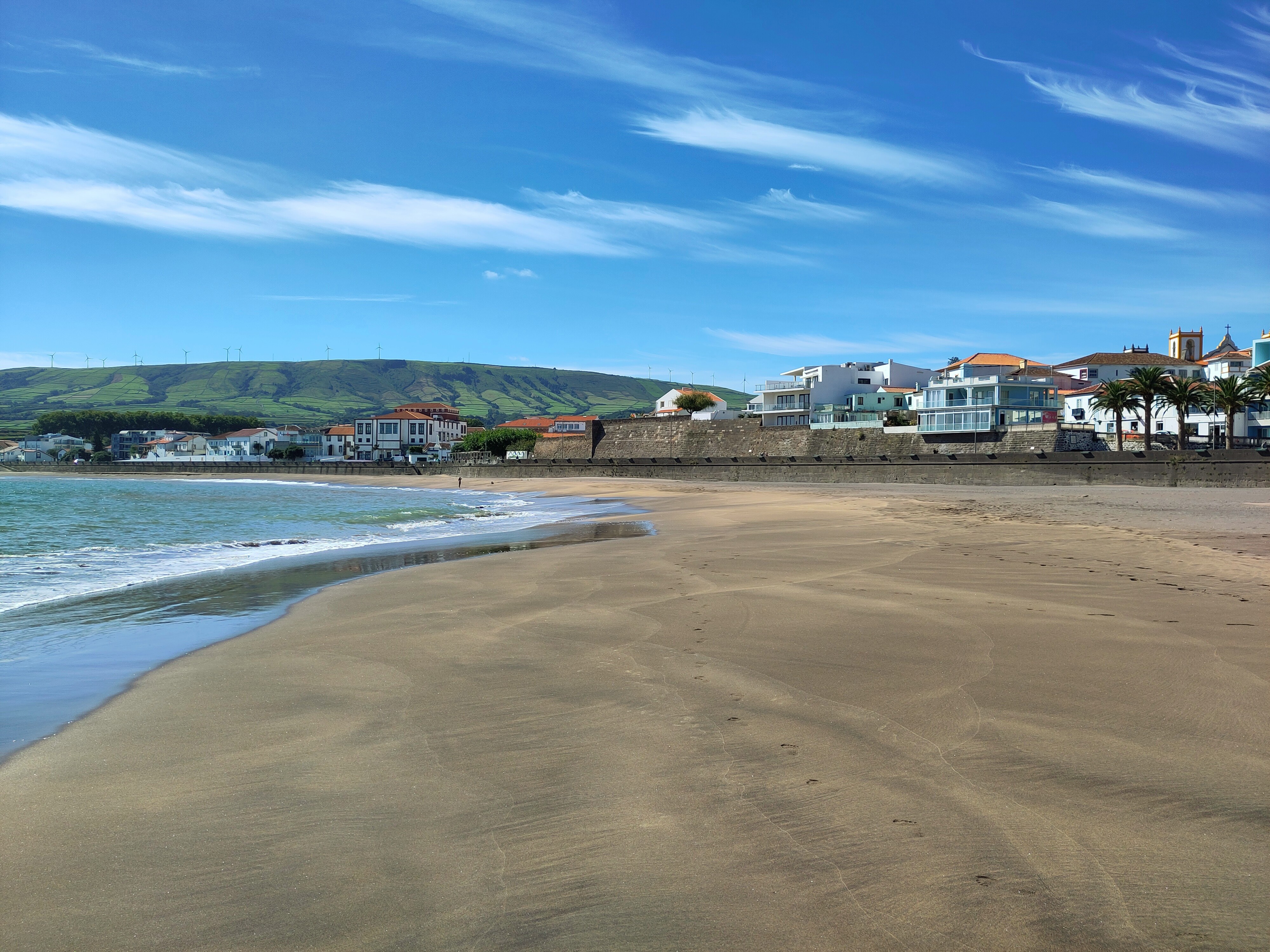 In Terceira habe ich mich für einen Aufenthalt in Praia da Vitória entschieden, aufgrund der Nähe zum Flughafen und des einen Kilometer langen Sandstrandes. Das Städtchen ist übersichtlich und bietet einige farbenfrohe, historische Gebäude. Vom Aussichtspunkt «Miradouro do Facho» geniesse ich die Ruhe, das Panorama und den Wind in den Haaren.