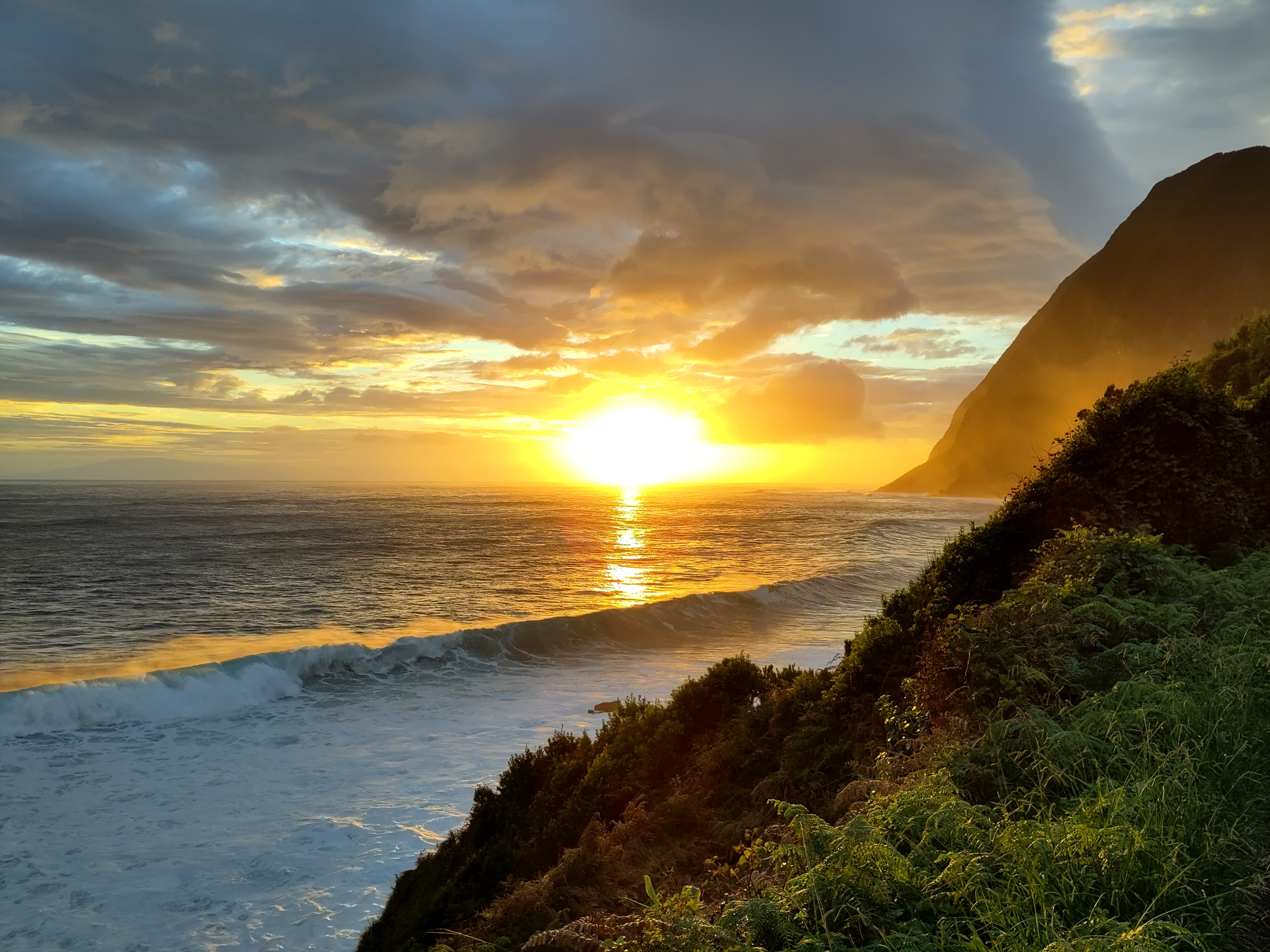 Sonnenaufgang an der Fajã da Caldeira de Santo Cristo