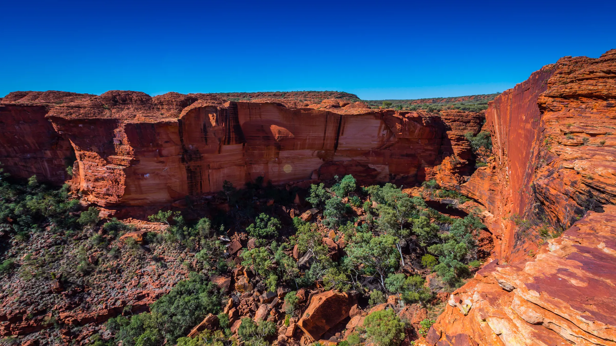 Auf halber Strecke zwischen Alice Springs und dem Uluru erlebst du eine faszinierende Schluchtwanderung. Auf anspruchsvollen Pfaden erkundest du die bis zu 100 Meter hohen, roten Felswände, die einen atemberaubenden Ausblick bieten. Der Canyon Rim Walk führt dich zudem zu einem Teich, an dem du in den Morgen- und Abendstunden Tiere beim Trinken beobachten kannst.