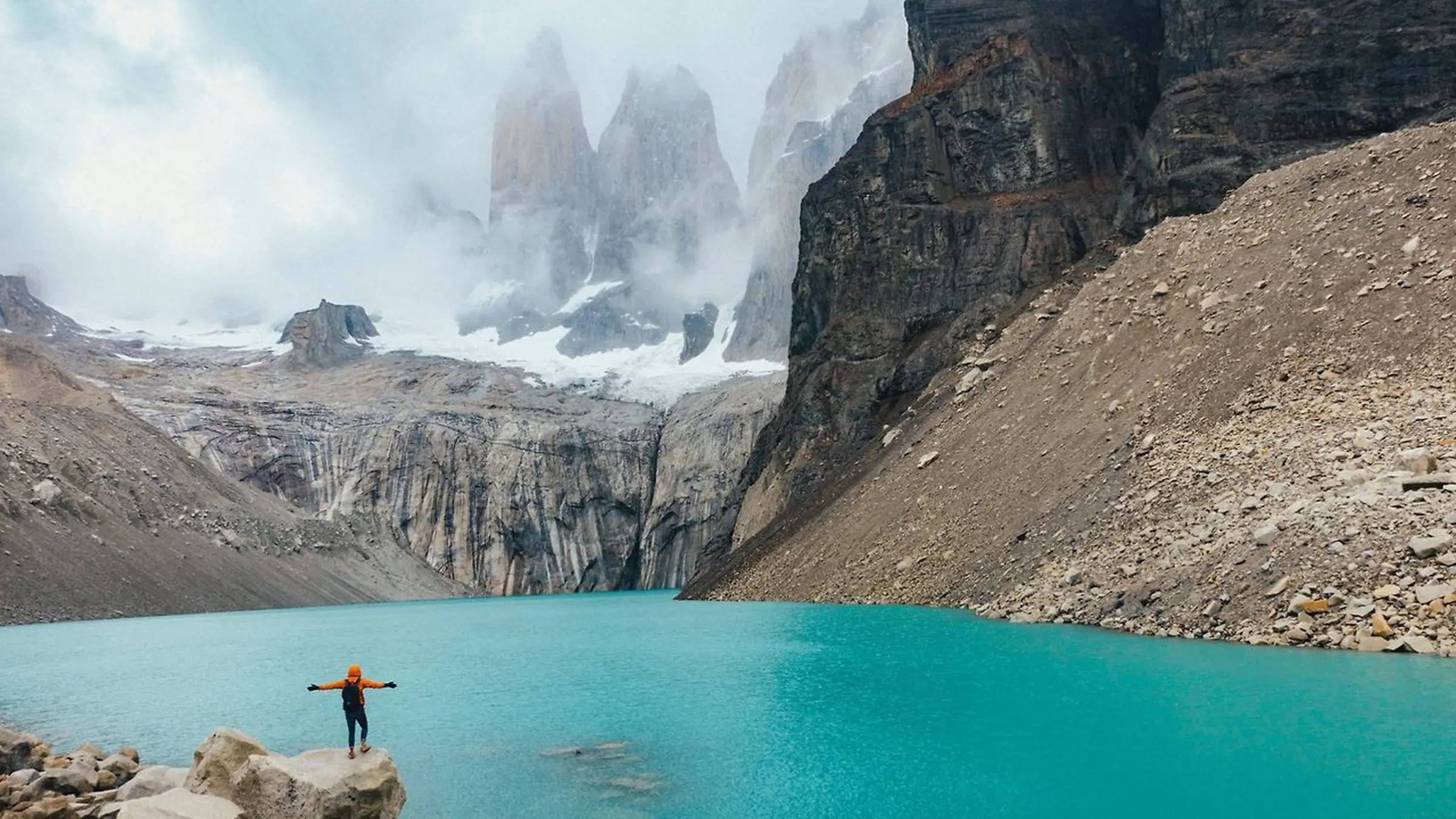 Mit einem privaten Transfer fähren wir zum Eingang vom Torres del Paine Nationalpark. Wir stoppen beim Welcome Center und bereiten uns auf die Wanderung vor. Wir erkunden Torres del Paine, indem wir zur Basis von Las Torres wandern, um die beeindruckenden drei Türme und die türkisfarbene Lagune darunter zu sehen.