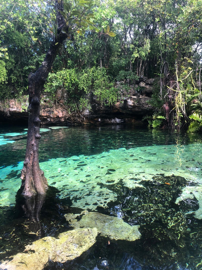 Heute übernehmen wir unseren Mietwagen und machen uns auf den Weg nach Tulum. Während der Fahrt machen wir Halt bei verschiedenen Cenoten. Mein Favorit: Die Cenote Azul.