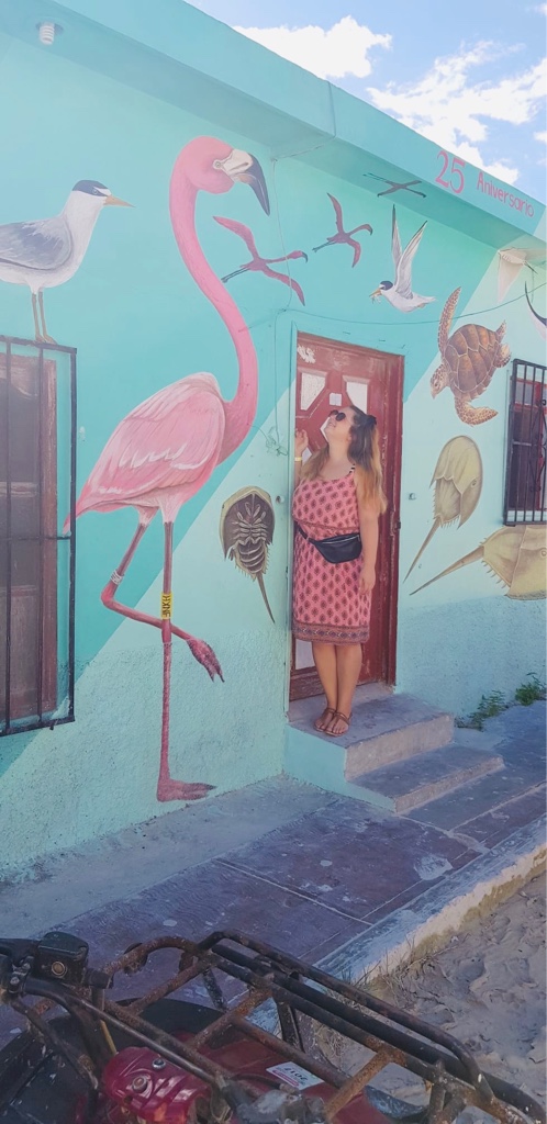 Auf Holbox gibt es keine geteerten Strassen, daher müssen wir mehrmals durch riesige Pfützen watscheln. Trotzdem sind wir immer noch begeistern von der Insel! Je nach Saison kann man von hier aus Walhaie sehen. Wir sind aber schon sprachlos aufgrund des leuchtenden Planktons, welches wir nach Sonnenuntergang bestaunen.