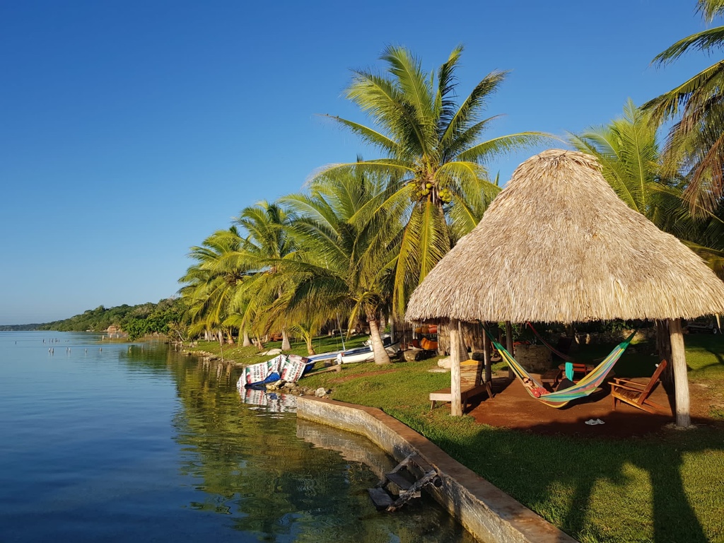 In Mexiko gibt es allerlei Unterkünfte. Vom kleinen bis grossen Budget ist alles machbar. In Bacalar entscheiden wir uns für eine einfache Strohhütte direkt an der Lagune.
